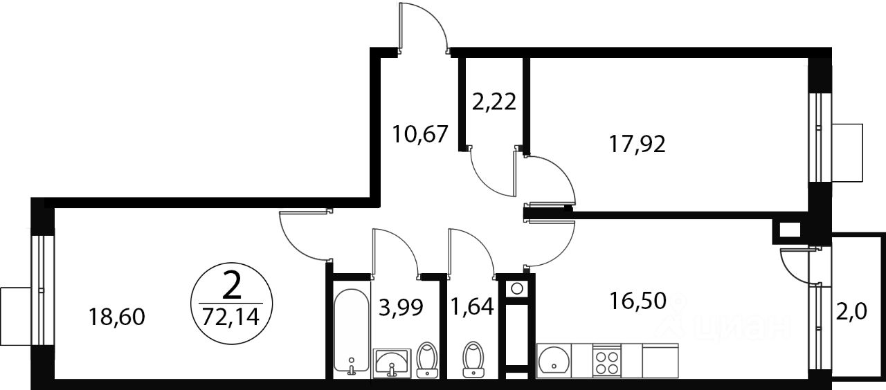 Продаётся 2-комнатная квартира в строящемся доме (Корпус 5), срок сдачи: IV-кв. 2026, общей площадью 72.14 кв.м., на 2 этаже. Расположение, транспортная доступность В состав жилого комплекса ''Катуар'' входят 43 пятиэтажных дома и разнообразная инфраструктура. Это целый посёлок, разместившийся на территории более 30 гектар. Своё название комплекс получил в честь промышленника Льва Катуара, владевшего здесь в XIX веке керамическим заводом, благодаря которому и появился посёлок Некрасовский. До МКАД отсюда 22 километра. Совсем рядом, в пятистах метрах, располагается Дмитровское шоссе. До ближайшей станции московского метро ''Алтуфьево'' можно доехать за 35-40 минут. В трёхстах метрах от комплекса расположена железнодорожная станция ''Катуар'', от которой отходит множество электропоездов до Савёловского вокзала Москвы (самый быстрый из них преодолевает это расстояние за 41 минуту, а до ближайших станций метро можно доехать ещё быстрее). Это самый удобный способ добраться от ЖК до столицы. Примерно в 30-35 минутах езды от комплекса располагаются подмосковные города Дмитров и Мытищи. Инфраструктура В жилом комплексе ''Катуар'' имеется собственная внутренняя инфраструктура, которая включает в себя: детский сад, многофункциональный торговый и общественно-деловой центр, магазины, спортивные площадки, зону барбекю, многоуровневый паркинг и другие объекты. Жителям комплекса не придётся каждый день ездить за покупками в соседние поселки. Поблизости от комплекса (в посёлке Некрасовский и в деревне Сухарево), работают: детские сады, школы, больницы, поликлиники, Дворцы культуры, множество магазинов, мясокомбинат ''Дмитровские колбасы'', конные клубы, санаторий, дворянская усадьба ''Марфино'', построенная в готическом стиле, горнолыжные курорты, СПА-отели. Для того чтобы отдохнуть на природе, жителям Катуара не придется уезжать далеко от дома. Поблизости находятся такие природные зоны, как: обширный Марфинский лесопарк, река Уча, река Саморядовка, несколько прудов, Клязьминское и Икшинское водохранилища. Надёжность застройщика Строительством жилого комплекса ''Катуар'' занималась компания ООО ''Специализированный застройщик ''Катуар Девелопмент''. Организация входит в состав образованной в 2002 году группы компаний ''Ферро-Строй'', которая специализируется на строительстве в Москве жилой, коммерческой и социальной недвижимости. На счету группы компаний ''Ферро-Строй'' строительство в Москве жилого квартала ''Ривер парк'', жилых комплексов ''Примавера'', ''Парковая'', ''Дипломат'', бизнес-центров класса А Pallau RB, Pallau NK, Pallau OST, Pallau MD, торгового центра ''Ключевой'', лечебно-профилактического центра на улице Селезневская, ДОУ на улице Корабельная, школы на улице Речников и другие объекты. Архитектура В жилом комплексе ''Катуар'' представлены квартиры улучшенной планировки с количеством комнат от одной до трех и площадью от 29 кв. метров до 119 кв. метров. Потолки будут иметь высоту 280 см. Общая площадь квартир составит 165 тыс. кв. метров. Квартиры сдаются как с отделкой