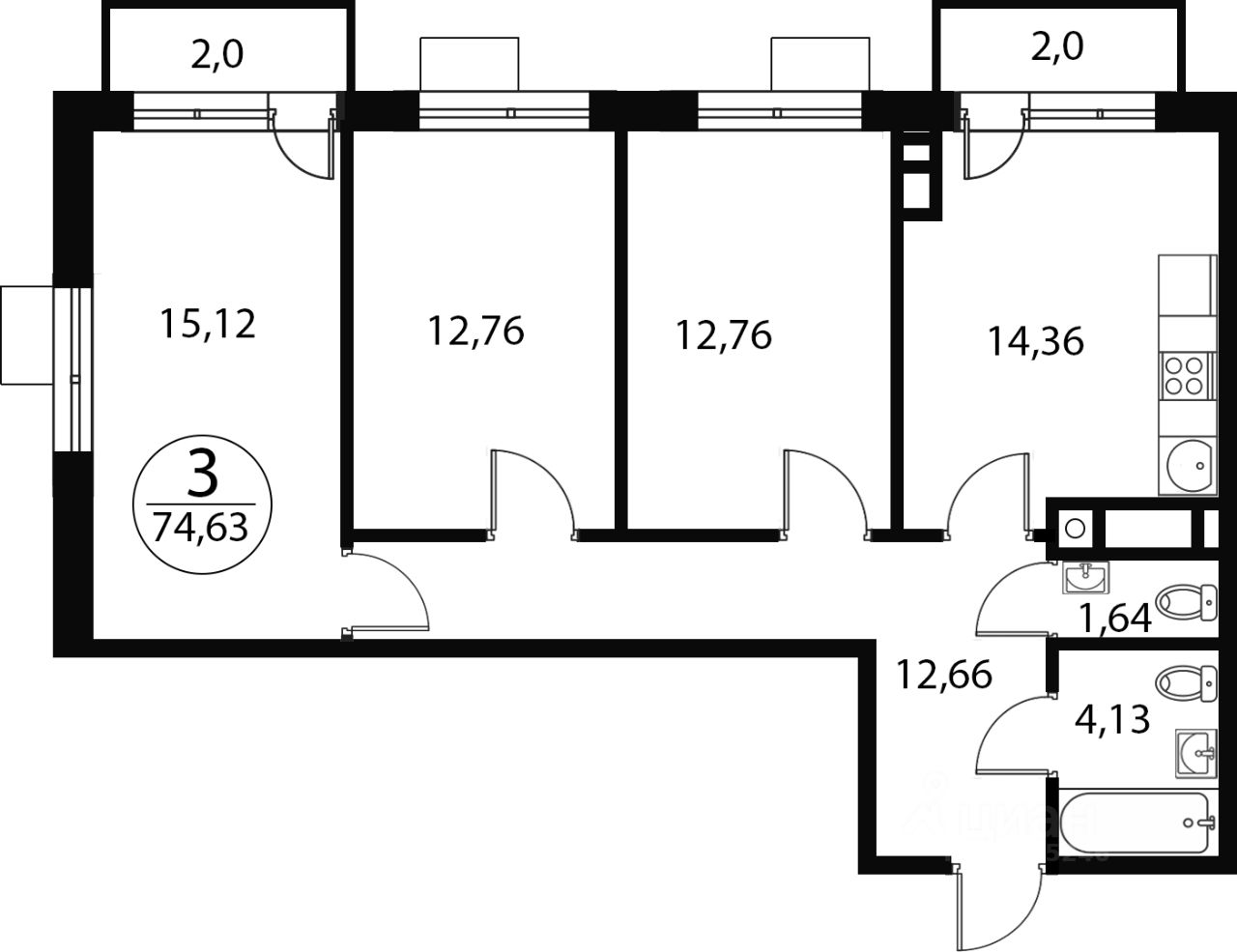 Продаётся 3-комнатная квартира в строящемся доме (Корпус 5), срок сдачи: IV-кв. 2026, общей площадью 74.63 кв.м., на 4 этаже. Расположение, транспортная доступность В состав жилого комплекса ''Катуар'' входят 43 пятиэтажных дома и разнообразная инфраструктура. Это целый посёлок, разместившийся на территории более 30 гектар. Своё название комплекс получил в честь промышленника Льва Катуара, владевшего здесь в XIX веке керамическим заводом, благодаря которому и появился посёлок Некрасовский. До МКАД отсюда 22 километра. Совсем рядом, в пятистах метрах, располагается Дмитровское шоссе. До ближайшей станции московского метро ''Алтуфьево'' можно доехать за 35-40 минут. В трёхстах метрах от комплекса расположена железнодорожная станция ''Катуар'', от которой отходит множество электропоездов до Савёловского вокзала Москвы (самый быстрый из них преодолевает это расстояние за 41 минуту, а до ближайших станций метро можно доехать ещё быстрее). Это самый удобный способ добраться от ЖК до столицы. Примерно в 30-35 минутах езды от комплекса располагаются подмосковные города Дмитров и Мытищи. Инфраструктура В жилом комплексе ''Катуар'' имеется собственная внутренняя инфраструктура, которая включает в себя: детский сад, многофункциональный торговый и общественно-деловой центр, магазины, спортивные площадки, зону барбекю, многоуровневый паркинг и другие объекты. Жителям комплекса не придётся каждый день ездить за покупками в соседние поселки. Поблизости от комплекса (в посёлке Некрасовский и в деревне Сухарево), работают: детские сады, школы, больницы, поликлиники, Дворцы культуры, множество магазинов, мясокомбинат ''Дмитровские колбасы'', конные клубы, санаторий, дворянская усадьба ''Марфино'', построенная в готическом стиле, горнолыжные курорты, СПА-отели. Для того чтобы отдохнуть на природе, жителям Катуара не придется уезжать далеко от дома. Поблизости находятся такие природные зоны, как: обширный Марфинский лесопарк, река Уча, река Саморядовка, несколько прудов, Клязьминское и Икшинское водохранилища. Надёжность застройщика Строительством жилого комплекса ''Катуар'' занималась компания ООО ''Специализированный застройщик ''Катуар Девелопмент''. Организация входит в состав образованной в 2002 году группы компаний ''Ферро-Строй'', которая специализируется на строительстве в Москве жилой, коммерческой и социальной недвижимости. На счету группы компаний ''Ферро-Строй'' строительство в Москве жилого квартала ''Ривер парк'', жилых комплексов ''Примавера'', ''Парковая'', ''Дипломат'', бизнес-центров класса А Pallau RB, Pallau NK, Pallau OST, Pallau MD, торгового центра ''Ключевой'', лечебно-профилактического центра на улице Селезневская, ДОУ на улице Корабельная, школы на улице Речников и другие объекты. Архитектура В жилом комплексе ''Катуар'' представлены квартиры улучшенной планировки с количеством комнат от одной до трех и площадью от 29 кв. метров до 119 кв. метров. Потолки будут иметь высоту 280 см. Общая площадь квартир составит 165 тыс. кв. метров. Квартиры сдаются как с отделкой