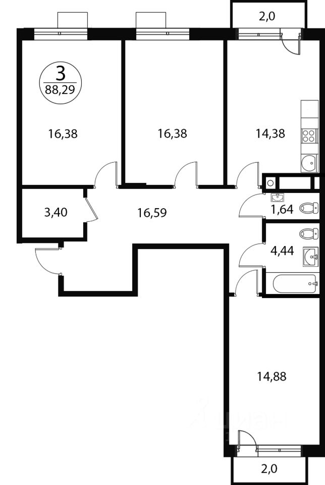Продаётся 3-комнатная квартира в строящемся доме (Корпус 2), срок сдачи: IV-кв. 2026, общей площадью 89.29 кв.м., на 4 этаже. Расположение, транспортная доступность В состав жилого комплекса ''Катуар'' входят 43 пятиэтажных дома и разнообразная инфраструктура. Это целый посёлок, разместившийся на территории более 30 гектар. Своё название комплекс получил в честь промышленника Льва Катуара, владевшего здесь в XIX веке керамическим заводом, благодаря которому и появился посёлок Некрасовский. До МКАД отсюда 22 километра. Совсем рядом, в пятистах метрах, располагается Дмитровское шоссе. До ближайшей станции московского метро ''Алтуфьево'' можно доехать за 35-40 минут. В трёхстах метрах от комплекса расположена железнодорожная станция ''Катуар'', от которой отходит множество электропоездов до Савёловского вокзала Москвы (самый быстрый из них преодолевает это расстояние за 41 минуту, а до ближайших станций метро можно доехать ещё быстрее). Это самый удобный способ добраться от ЖК до столицы. Примерно в 30-35 минутах езды от комплекса располагаются подмосковные города Дмитров и Мытищи. Инфраструктура В жилом комплексе ''Катуар'' имеется собственная внутренняя инфраструктура, которая включает в себя: детский сад, многофункциональный торговый и общественно-деловой центр, магазины, спортивные площадки, зону барбекю, многоуровневый паркинг и другие объекты. Жителям комплекса не придётся каждый день ездить за покупками в соседние поселки. Поблизости от комплекса (в посёлке Некрасовский и в деревне Сухарево), работают: детские сады, школы, больницы, поликлиники, Дворцы культуры, множество магазинов, мясокомбинат ''Дмитровские колбасы'', конные клубы, санаторий, дворянская усадьба ''Марфино'', построенная в готическом стиле, горнолыжные курорты, СПА-отели. Для того чтобы отдохнуть на природе, жителям Катуара не придется уезжать далеко от дома. Поблизости находятся такие природные зоны, как: обширный Марфинский лесопарк, река Уча, река Саморядовка, несколько прудов, Клязьминское и Икшинское водохранилища. Надёжность застройщика Строительством жилого комплекса ''Катуар'' занималась компания ООО ''Специализированный застройщик ''Катуар Девелопмент''. Организация входит в состав образованной в 2002 году группы компаний ''Ферро-Строй'', которая специализируется на строительстве в Москве жилой, коммерческой и социальной недвижимости. На счету группы компаний ''Ферро-Строй'' строительство в Москве жилого квартала ''Ривер парк'', жилых комплексов ''Примавера'', ''Парковая'', ''Дипломат'', бизнес-центров класса А Pallau RB, Pallau NK, Pallau OST, Pallau MD, торгового центра ''Ключевой'', лечебно-профилактического центра на улице Селезневская, ДОУ на улице Корабельная, школы на улице Речников и другие объекты. Архитектура В жилом комплексе ''Катуар'' представлены квартиры улучшенной планировки с количеством комнат от одной до трех и площадью от 29 кв. метров до 119 кв. метров. Потолки будут иметь высоту 280 см. Общая площадь квартир составит 165 тыс. кв. метров. Квартиры сдаются как с отделкой
