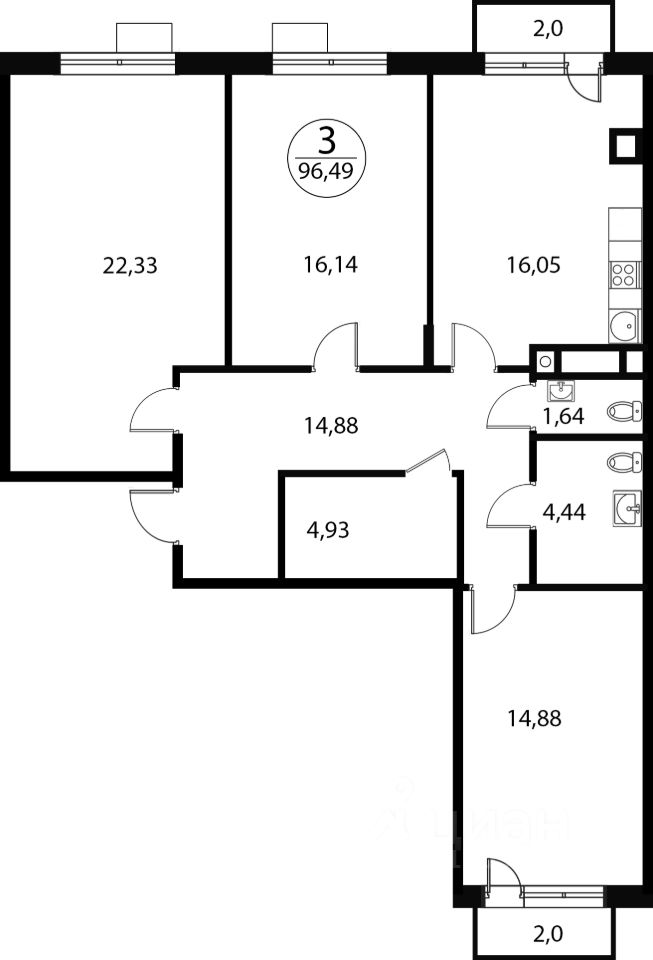 Продаётся 3-комнатная квартира в строящемся доме (Корпус 1), срок сдачи: IV-кв. 2026, общей площадью 96.49 кв.м., на 2 этаже. Расположение, транспортная доступность В состав жилого комплекса ''Катуар'' входят 43 пятиэтажных дома и разнообразная инфраструктура. Это целый посёлок, разместившийся на территории более 30 гектар. Своё название комплекс получил в честь промышленника Льва Катуара, владевшего здесь в XIX веке керамическим заводом, благодаря которому и появился посёлок Некрасовский. До МКАД отсюда 22 километра. Совсем рядом, в пятистах метрах, располагается Дмитровское шоссе. До ближайшей станции московского метро ''Алтуфьево'' можно доехать за 35-40 минут. В трёхстах метрах от комплекса расположена железнодорожная станция ''Катуар'', от которой отходит множество электропоездов до Савёловского вокзала Москвы (самый быстрый из них преодолевает это расстояние за 41 минуту, а до ближайших станций метро можно доехать ещё быстрее). Это самый удобный способ добраться от ЖК до столицы. Примерно в 30-35 минутах езды от комплекса располагаются подмосковные города Дмитров и Мытищи. Инфраструктура В жилом комплексе ''Катуар'' имеется собственная внутренняя инфраструктура, которая включает в себя: детский сад, многофункциональный торговый и общественно-деловой центр, магазины, спортивные площадки, зону барбекю, многоуровневый паркинг и другие объекты. Жителям комплекса не придётся каждый день ездить за покупками в соседние поселки. Поблизости от комплекса (в посёлке Некрасовский и в деревне Сухарево), работают: детские сады, школы, больницы, поликлиники, Дворцы культуры, множество магазинов, мясокомбинат ''Дмитровские колбасы'', конные клубы, санаторий, дворянская усадьба ''Марфино'', построенная в готическом стиле, горнолыжные курорты, СПА-отели. Для того чтобы отдохнуть на природе, жителям Катуара не придется уезжать далеко от дома. Поблизости находятся такие природные зоны, как: обширный Марфинский лесопарк, река Уча, река Саморядовка, несколько прудов, Клязьминское и Икшинское водохранилища. Надёжность застройщика Строительством жилого комплекса ''Катуар'' занималась компания ООО ''Специализированный застройщик ''Катуар Девелопмент''. Организация входит в состав образованной в 2002 году группы компаний ''Ферро-Строй'', которая специализируется на строительстве в Москве жилой, коммерческой и социальной недвижимости. На счету группы компаний ''Ферро-Строй'' строительство в Москве жилого квартала ''Ривер парк'', жилых комплексов ''Примавера'', ''Парковая'', ''Дипломат'', бизнес-центров класса А Pallau RB, Pallau NK, Pallau OST, Pallau MD, торгового центра ''Ключевой'', лечебно-профилактического центра на улице Селезневская, ДОУ на улице Корабельная, школы на улице Речников и другие объекты. Архитектура В жилом комплексе ''Катуар'' представлены квартиры улучшенной планировки с количеством комнат от одной до трех и площадью от 29 кв. метров до 119 кв. метров. Потолки будут иметь высоту 280 см. Общая площадь квартир составит 165 тыс. кв. метров. Квартиры сдаются как с отделкой