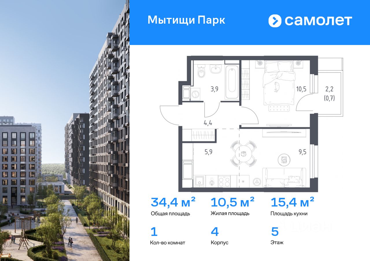Строим кварталы для жизни с заботой о будущем. Предлагается 1-комнатная квартира комфорт-класса 34,4 кв.м в корпусе 4 на 5 этаже, в ЖК ''Мытищи Парк''