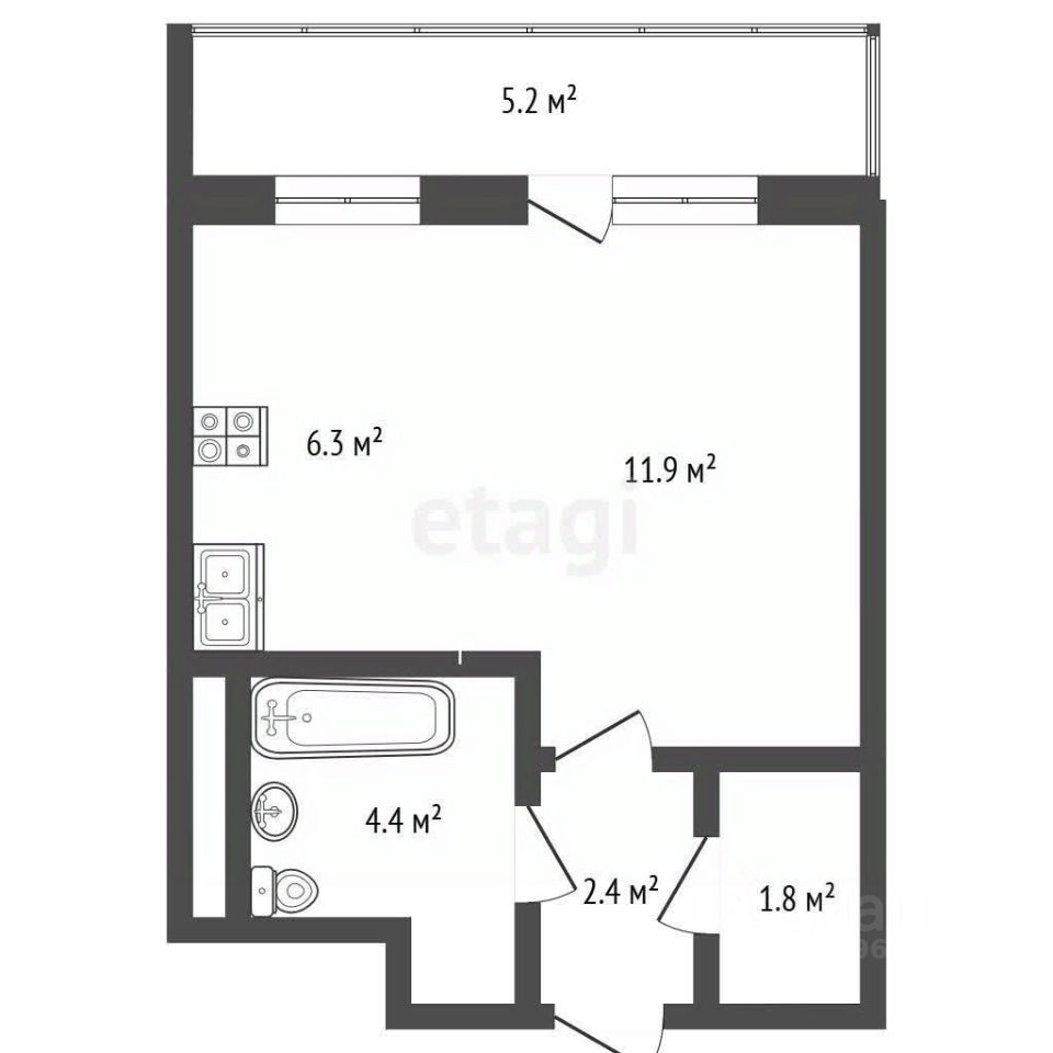 Данная студия в ЖК ''Датский квартал'' предлагает рациональную планировку, где каждый метр площади, включая просторную лоджию, используется с максимальной эффективностью.