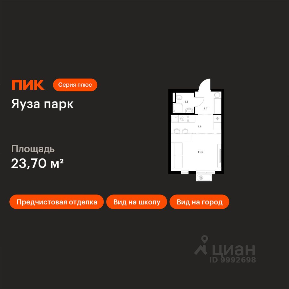 Продаётся квартира-студия площадью 23,7 кв.м на 14 этаже 24 этажного дома (Корпус 12, Секция 1) проекта ПИК Яуза парк. Светлый просторный подъезд на уровне земли, функциональная планировка, большие окна, предчистовая отделка.