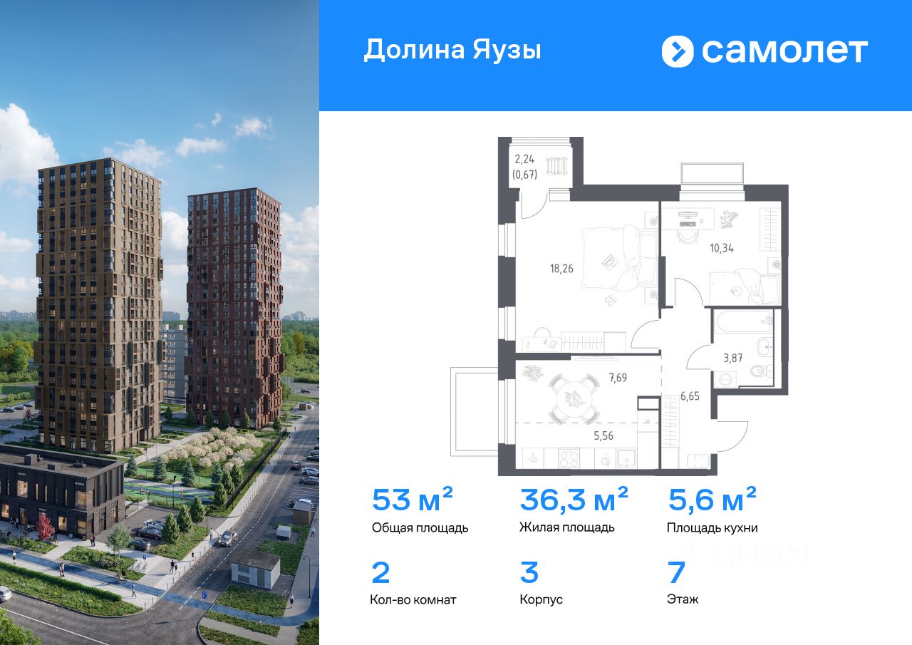 Строим кварталы для жизни с заботой о будущем. Предлагается 2-комнатная квартира комфорт-класса 53,04 кв.м в корпусе 3 на 7 этаже, в ЖК ''Долина Яузы'' Квартира с чистовой отделкой. Доступность дополнительных опций уточняйте у застройщика.