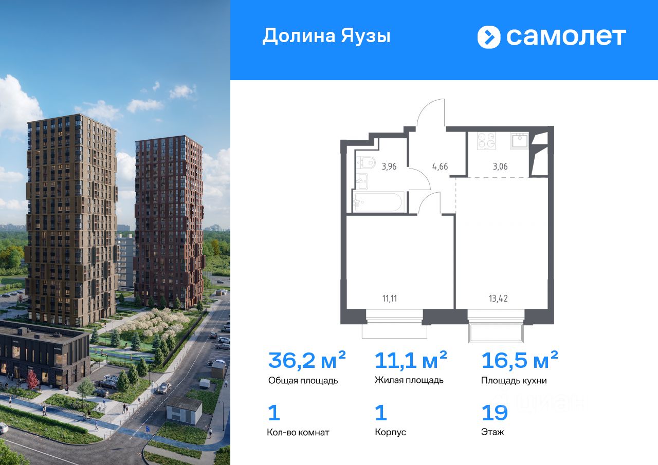 Строим кварталы для жизни с заботой о будущем. Предлагается 1-комнатная квартира комфорт-класса 36,21 кв.м в корпусе 1 на 19 этаже, в ЖК ''Долина Яузы'' Квартира с чистовой отделкой. Доступность дополнительных опций уточняйте у застройщика.