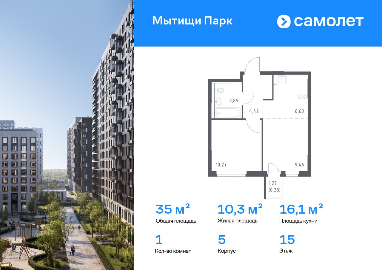 Строим кварталы для жизни с заботой о будущем. Предлагается 1-комнатная квартира комфорт-класса 34,99 кв.м в корпусе 5 на 15 этаже, в ЖК ''Мытищи Парк'' Квартира без отделки. Доступность опции ''отделка'' и возможность комплектации мебелью и декором уточняйте у застройщика.