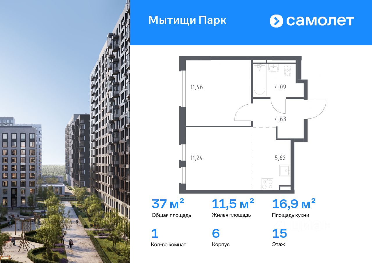 Строим кварталы для жизни с заботой о будущем. Предлагается 1-комнатная квартира комфорт-класса 37,04 кв.м в корпусе 6 на 15 этаже, в ЖК ''Мытищи Парк'' Квартира без отделки. Доступность опции ''отделка'' и возможность комплектации мебелью и декором уточняйте у застройщика.