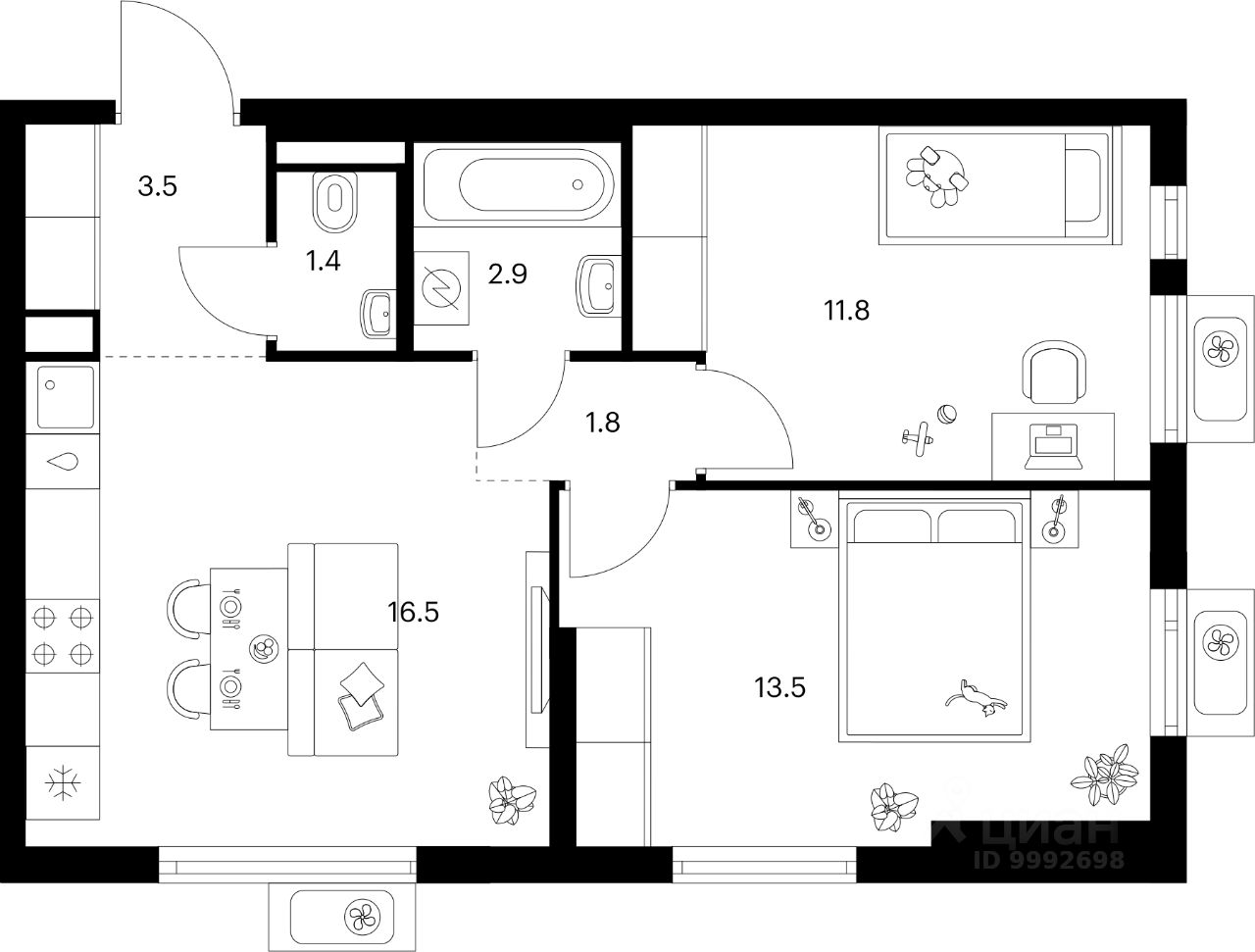 Продаётся 2-комн. квартира площадью 51,4 кв.м на 5 этаже 25 этажного дома (Корпус 2.4, Секция 1) проекта ПИК Ярославский квартал. Светлый просторный подъезд на уровне земли, функциональная планировка, большие окна, c отделкой.