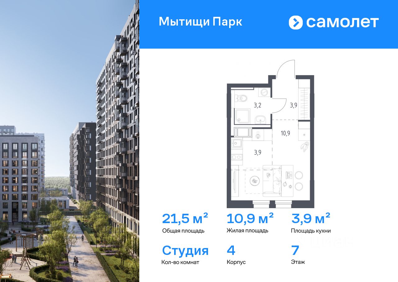 Строим кварталы для жизни с заботой о будущем. Предлагается квартира студия комфорт-класса 21,5 кв.м в корпусе 4 на 7 этаже, в ЖК ''Мытищи Парк''
