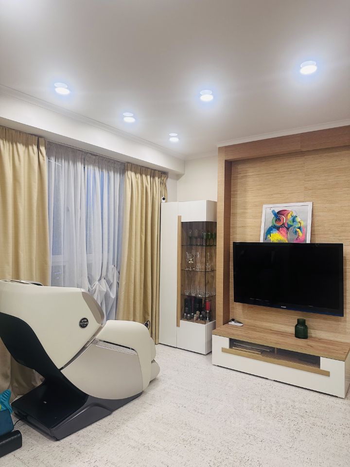 В квартире осуществлен дизайнерский ремонт. Современная глянцевая кухня (Стильные кухни) со встроенной техникой: микроволновая печь, духовой шкаф, варочная панель, посудомоечная машина, кондиционер Electrolux, elika вытяжка, холодильник liebherr (со встроеным ледогенератором), 6-ти ступенчатая система очистки воды, измельчитель отходов, стиральная машина с сушкой hotpoint ariston, видеодомофон, кодовый замок, сантехническое оборудование Villeroy & Boch, grou, тропический душ, встроенный гидромассаж из стены, пол- натуральная пробковая доска, стены- бамбуковые обои, квартира оборудована приточно-вытяжной системой( можно жить с закрытыми окнами, идёт, регулируемая с датчика, очистка воздуха). По всему периметру квартиры, включая пол и потолок, проложена шумоизоляция. Частично останется мебель, обговаривается индивидуально с потенциальным покупателем.