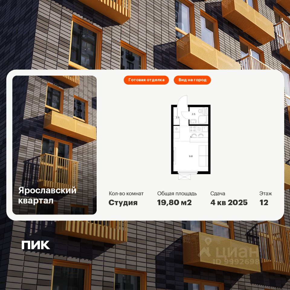 Продаётся квартира-студия площадью 19,8 кв.м на 12 этаже 25 этажного дома (Корпус 1.1, Секция 1) проекта ПИК Ярославский квартал. Светлый просторный подъезд на уровне земли, функциональная планировка, большие окна, c отделкой.