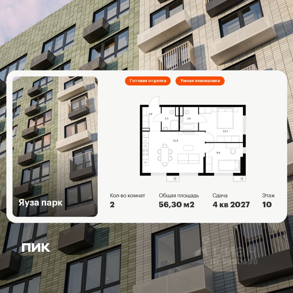Продаётся 2-комн. квартира площадью 56,3 кв.м на 10 этаже 25 этажного дома (Корпус 11, Секция 1) проекта ПИК Яуза парк. Светлый просторный подъезд на уровне земли, функциональная планировка, большие окна, c отделкой.