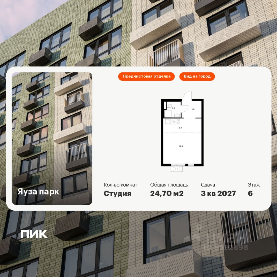 Продаётся квартира-студия площадью 24,7 кв.м на 6 этаже 24 этажного дома (Корпус 8, Секция 1) проекта ПИК Яуза парк. Светлый просторный подъезд на уровне земли, функциональная планировка, большие окна, предчистовая отделка.