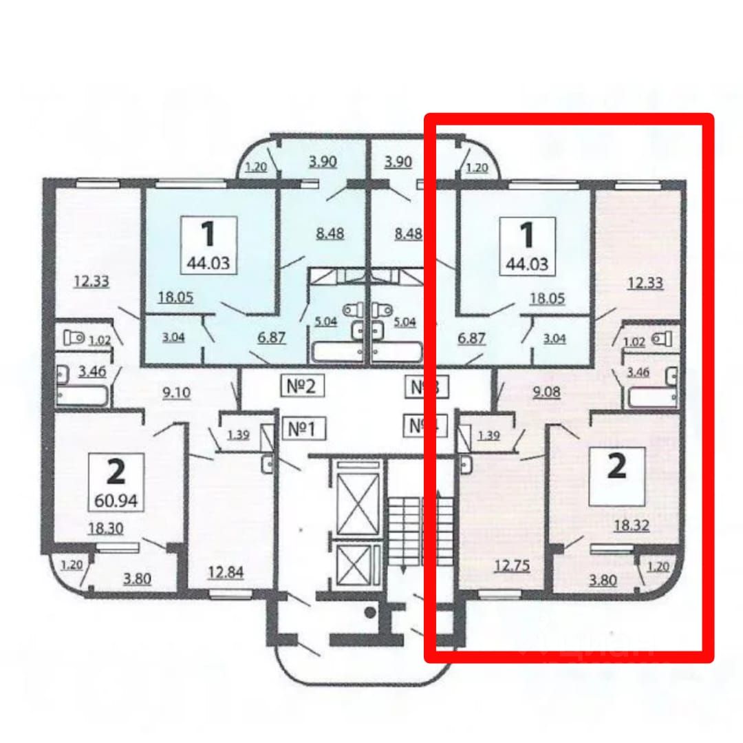 Комнаты раздельные: 18,3 и 12,3 кв.м.