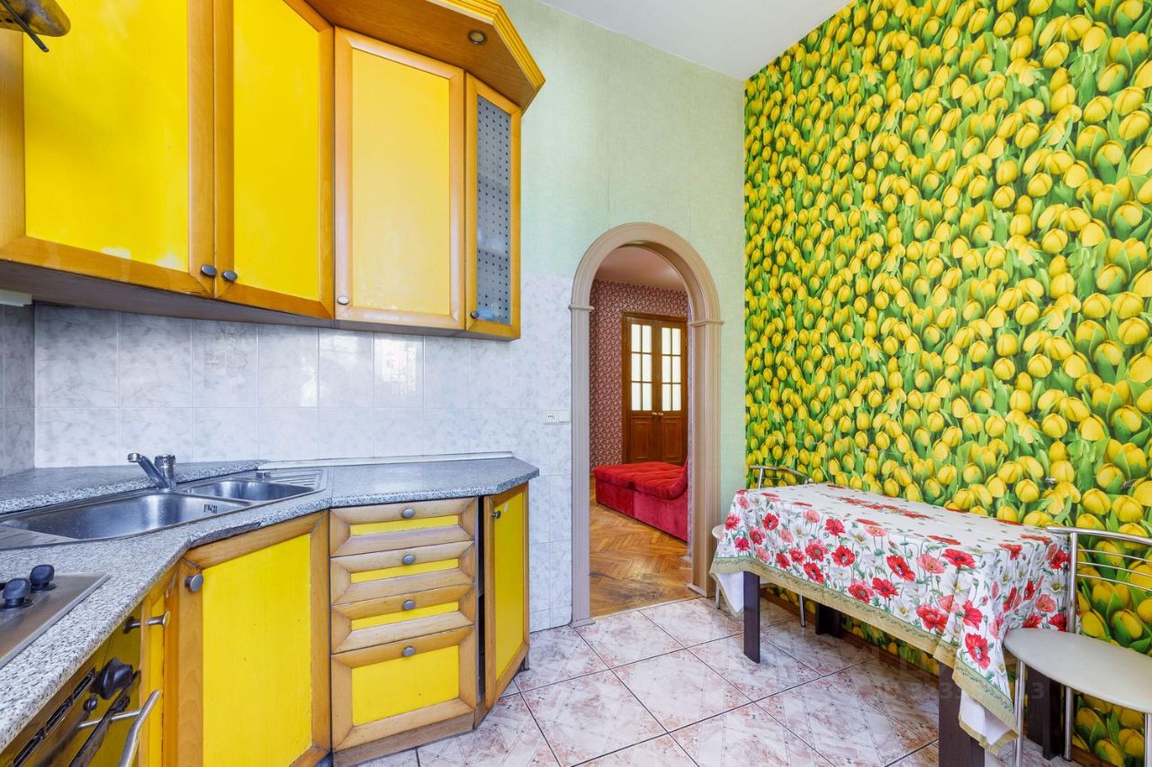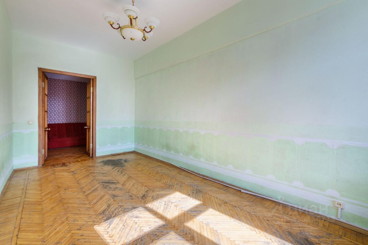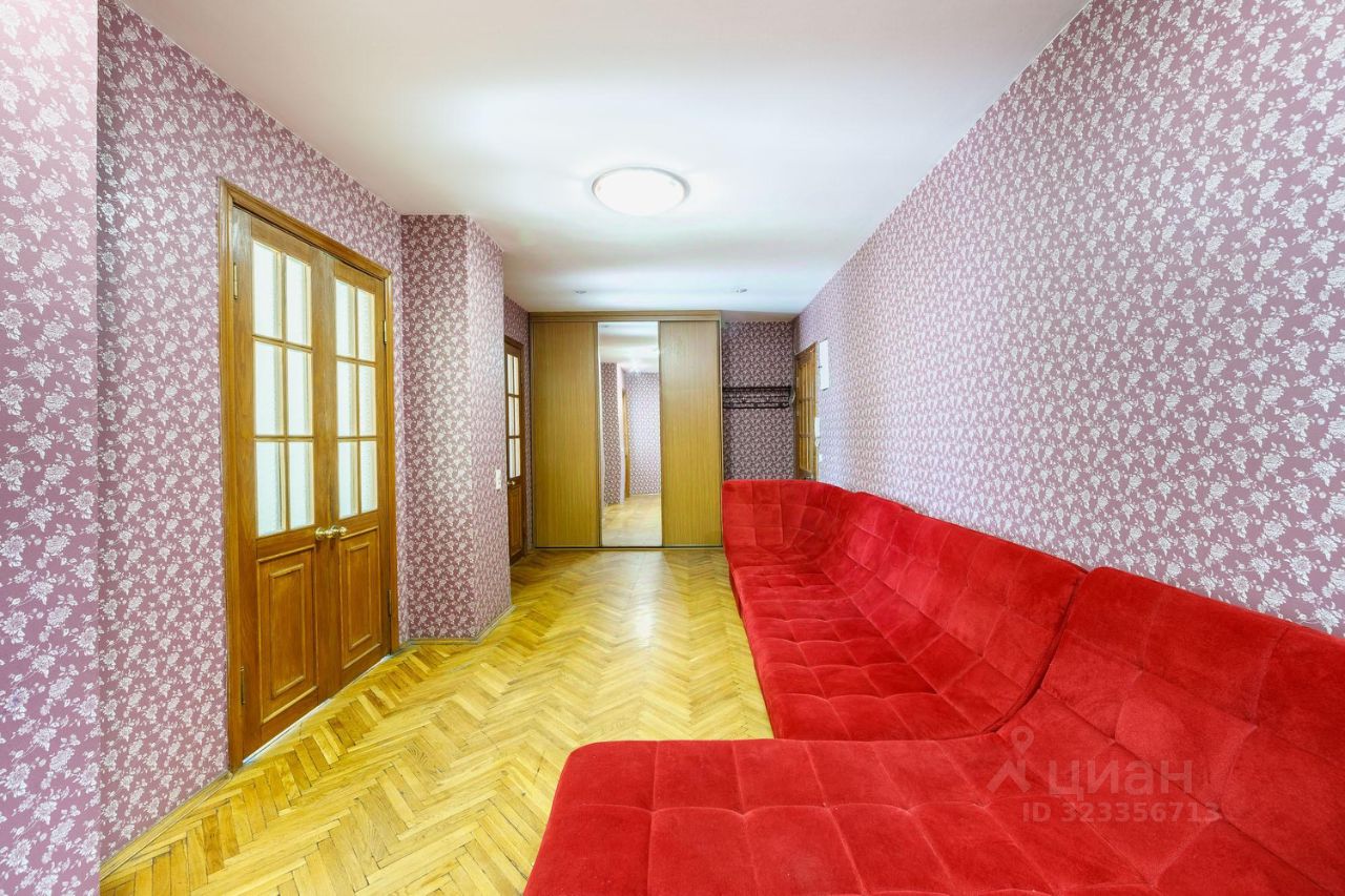 Общая площадь квартиры составляет 94 кв. м, из которых 57.6 кв. м - жилая, а кухня занимает 8 кв. м. Квартира расположена на третьем этаже четырехэтажного кирпичного дома, построенного в 1955 году. Одно из главных достоинств квартиры - высокие потолки 3.1 метра! При такой большой площади и высоких потолках, в квартире много пространства, воздуха и света.