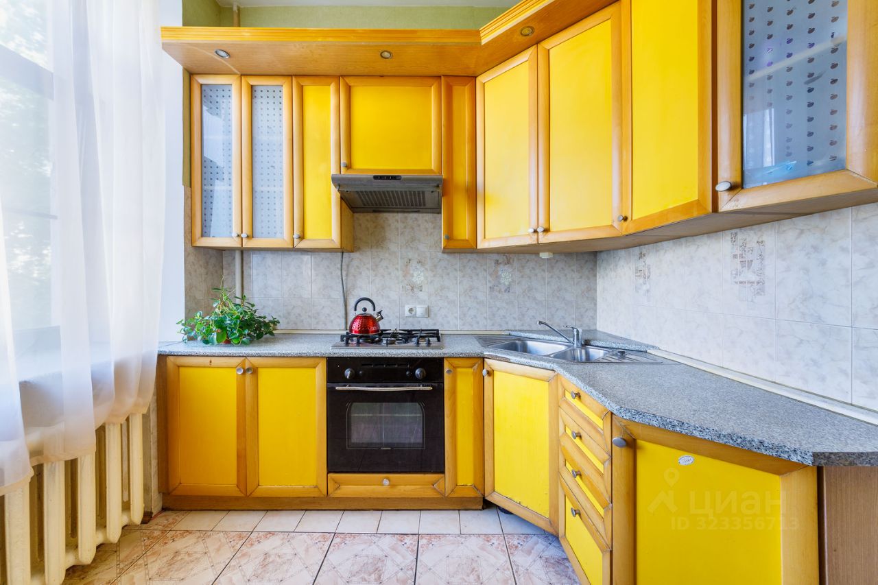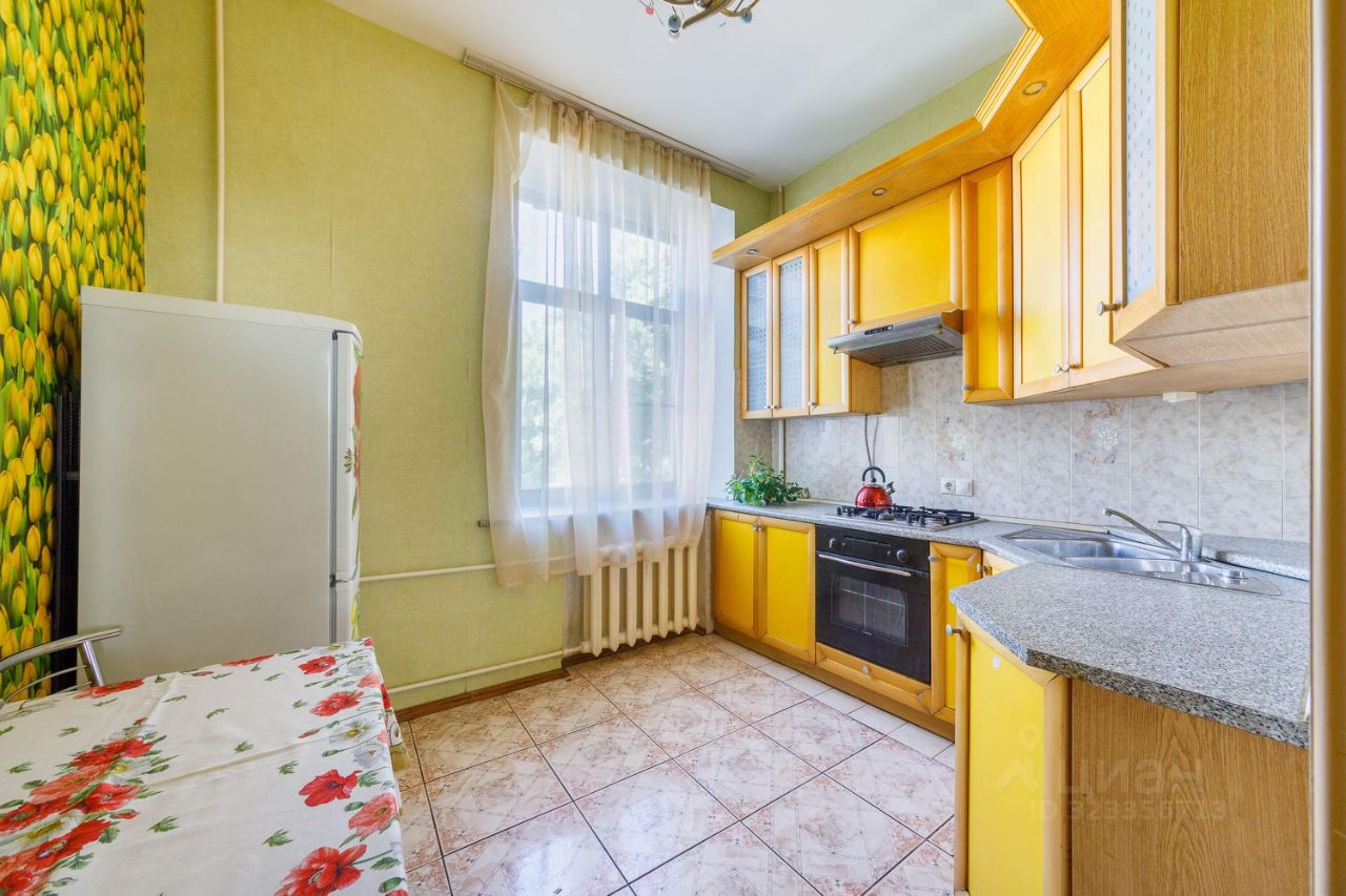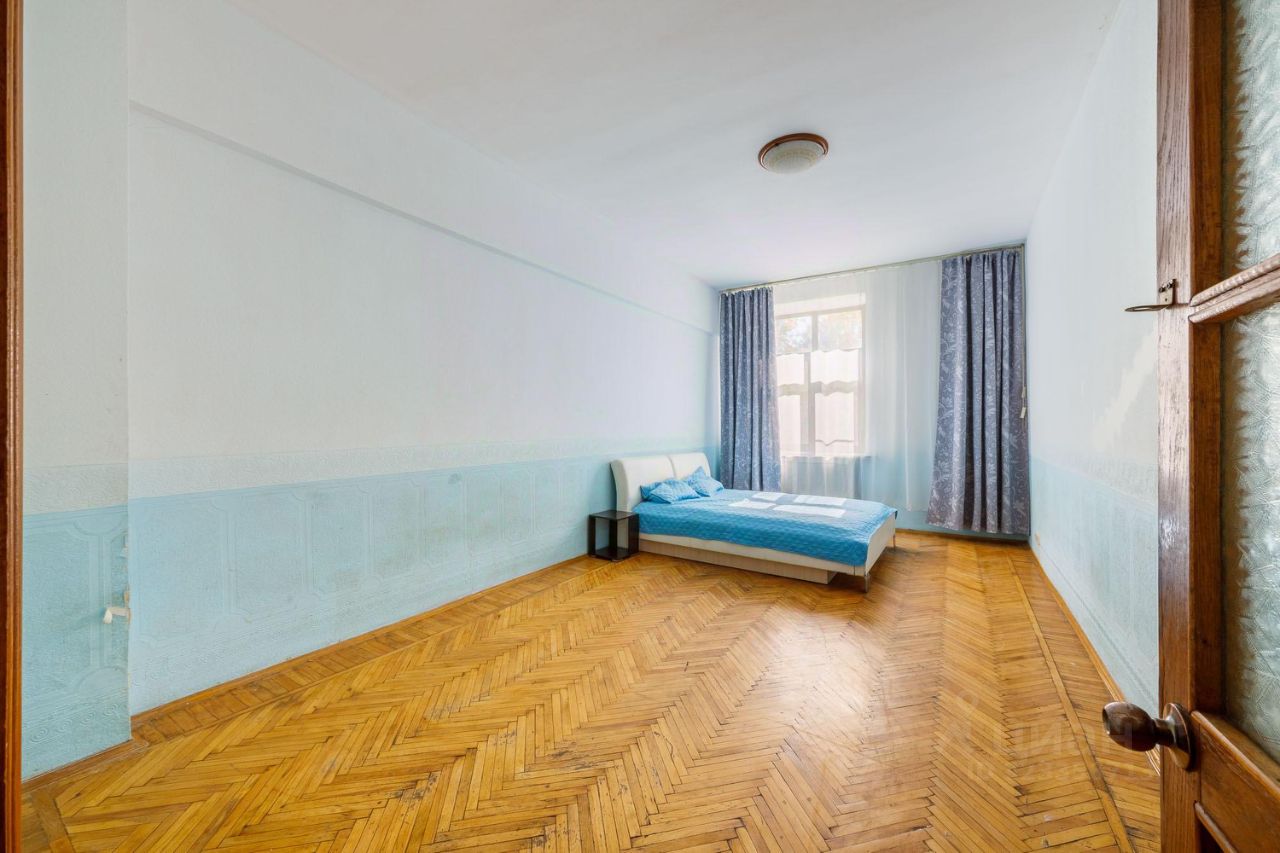 Общая площадь квартиры составляет 94 кв. м, из которых 57.6 кв. м - жилая, а кухня занимает 8 кв. м. Квартира расположена на третьем этаже четырехэтажного кирпичного дома, построенного в 1955 году. Одно из главных достоинств квартиры - высокие потолки 3.1 метра! При такой большой площади и высоких потолках, в квартире много пространства, воздуха и света.