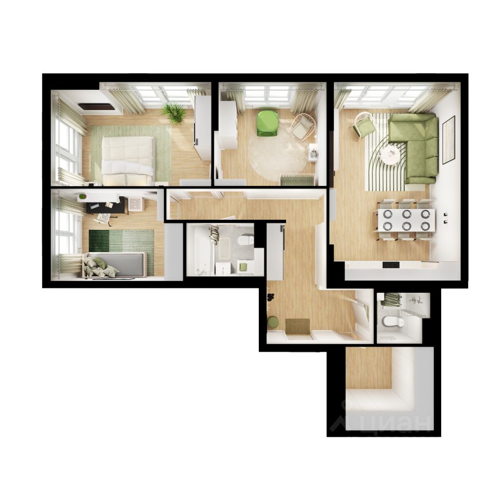 За 7 минут можно дойти пешком до ближайшей автобусной остановки. Столько же займёт дорога до ''Лосиного острова'' - облагороженного парка с разными активностями для всей семьи, благоустроенными зонами для отдыха, местами для прогулок и пробежек на свежем воздухе.