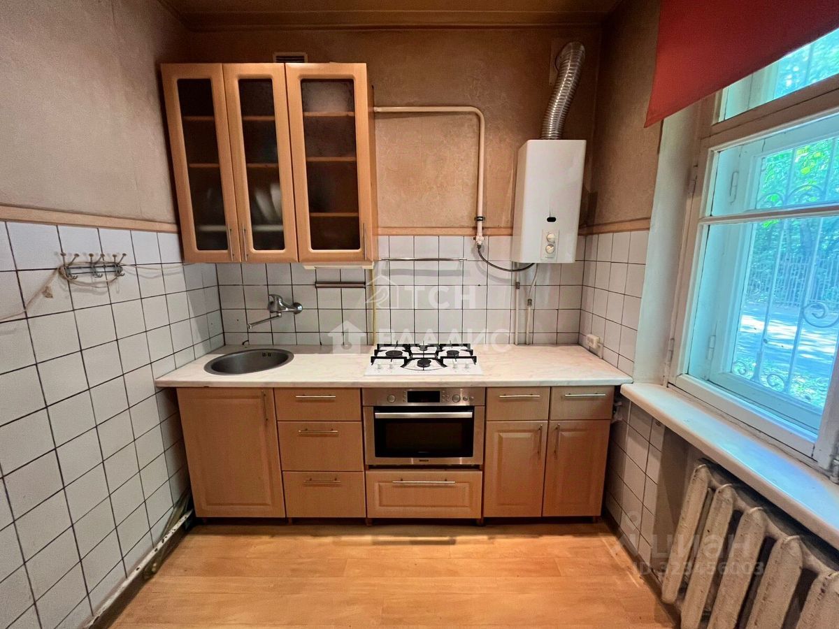 Квартира расположена на первом этаже двухэтажного дома 1959 года постройки. Общая площадь составляет 43,6 кв. м, из которых 30 кв. м — жилая площадь, 8 кв. м — кухня. Высота потолков — 2,5 м. Две комнаты (каждая по 15 кв. м) позволяют организовать пространство по своему вкусу. Квартира не угловая, окна выходят на улицу.