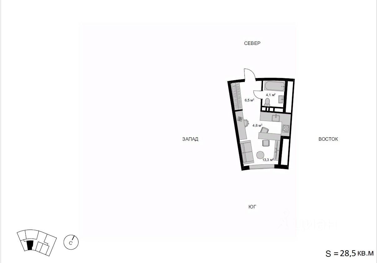 Продаётся студия в строящемся доме (Корпус 1), срок сдачи: IV-кв. 2025, общей площадью 28.5 кв.м., на 6 этаже. Многоквартирный жилой дом со встроенно-пристроенными нежилыми помещениями и автостоянкой
