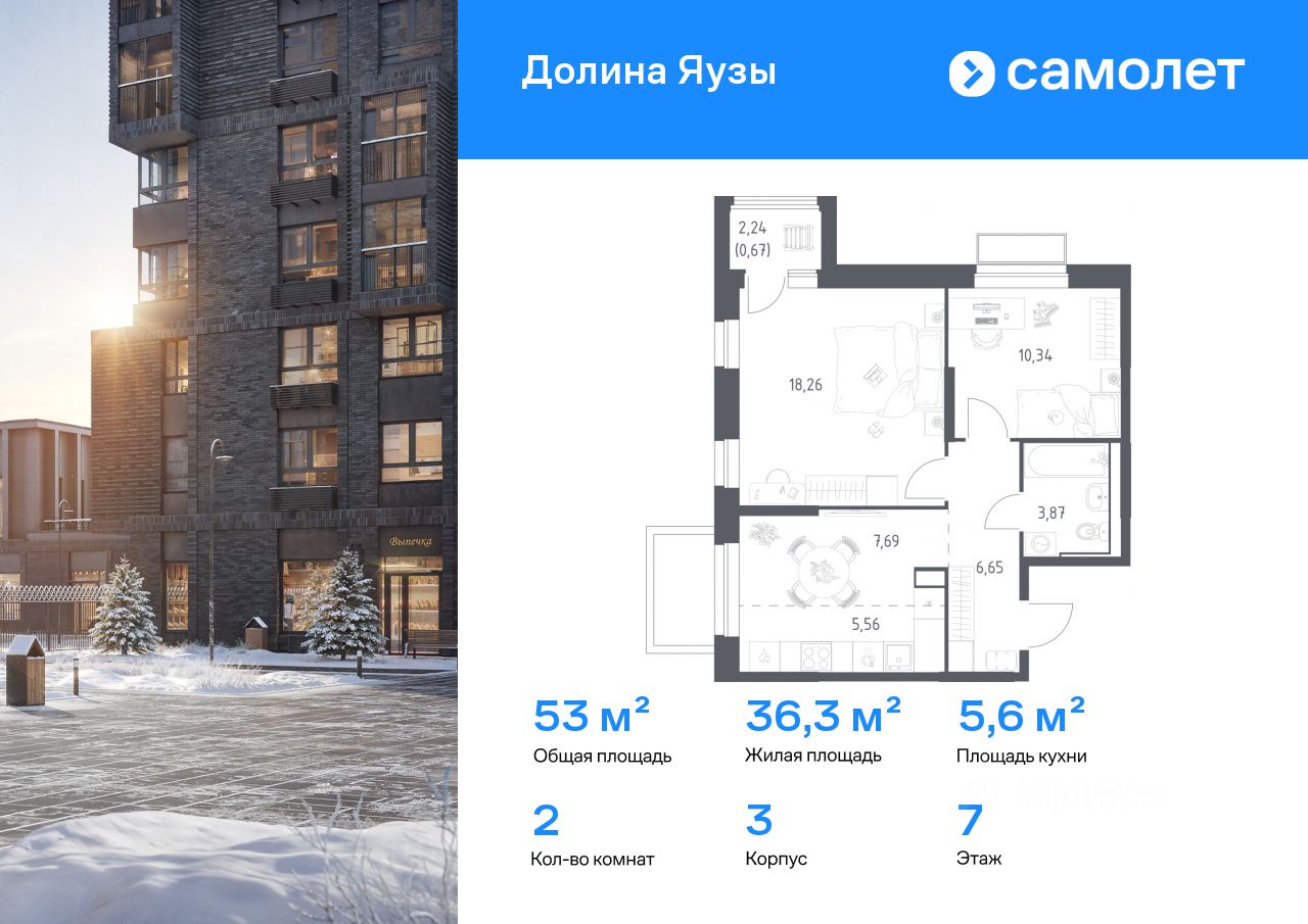 Строим кварталы для жизни с заботой о будущем. Предлагается 2-комнатная квартира комфорт-класса 53,04 кв.м в корпусе 3 на 7 этаже, в ЖК ''Долина Яузы'' Квартира с чистовой отделкой. Доступность дополнительных опций уточняйте у застройщика.
