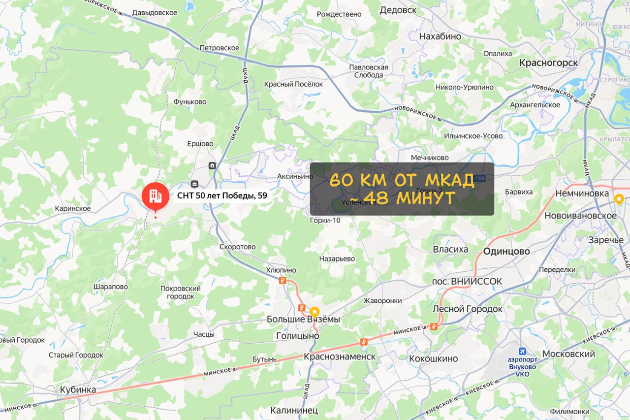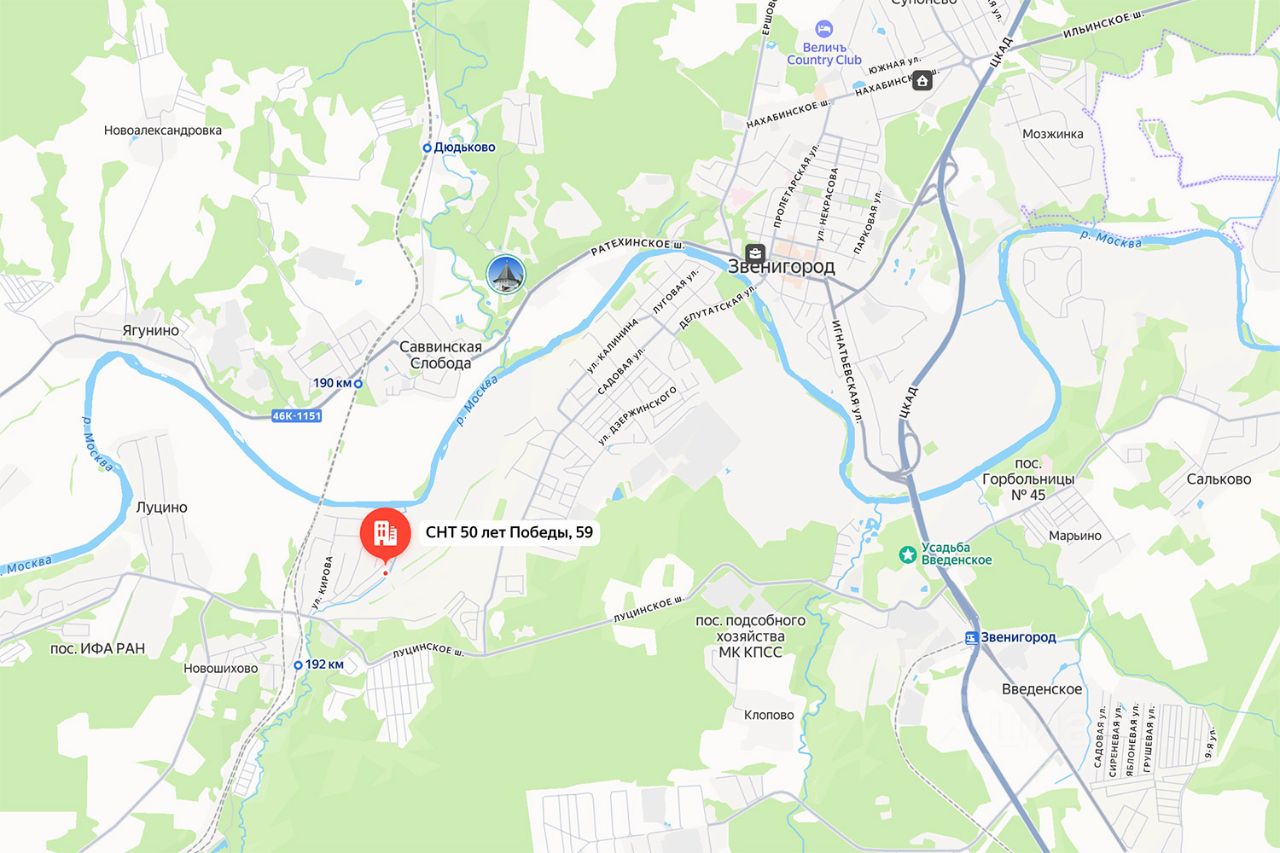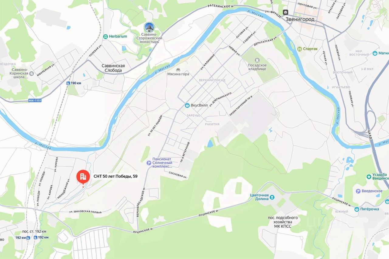 СНТ 50 лет Победы примыкает к микрорайону Звенигорода Шихово, рядом Москва-река и река Островня прямо напротив участка. Прекрасная экология, места в округе называют живописными, за шикарные виды на холмистые берега Москвы-реки, вековые сосны, сложный рельеф.