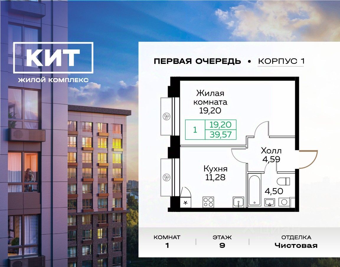 Продаётся 1-к квартира 39.6 кв.м. с чистовой отделкой в ЖК ''КИТ'' на 9-м этаже 25 этажного дома. Жилой комплекс ''Кит'' спроектирован в урбанистической концепции ''Город в Городе''. Объект бизнес-класса предлагает рациональный подход к набору опций, необходимых для гармоничной жизни. Проект представляет собой два корпуса, которые образуют единую приватную территорию. Ее доминантой является двор с красивым ландшафтным дизайном и различными зонами, ориентированными на интересы жителей разного возраста. При создании пространства в приоритет ставился комфорт жителей. В шаговой доступности находятся торговый центр, рестораны, кинотеатры, спортивный зал, образовательные учреждения и много других сфер услуг.