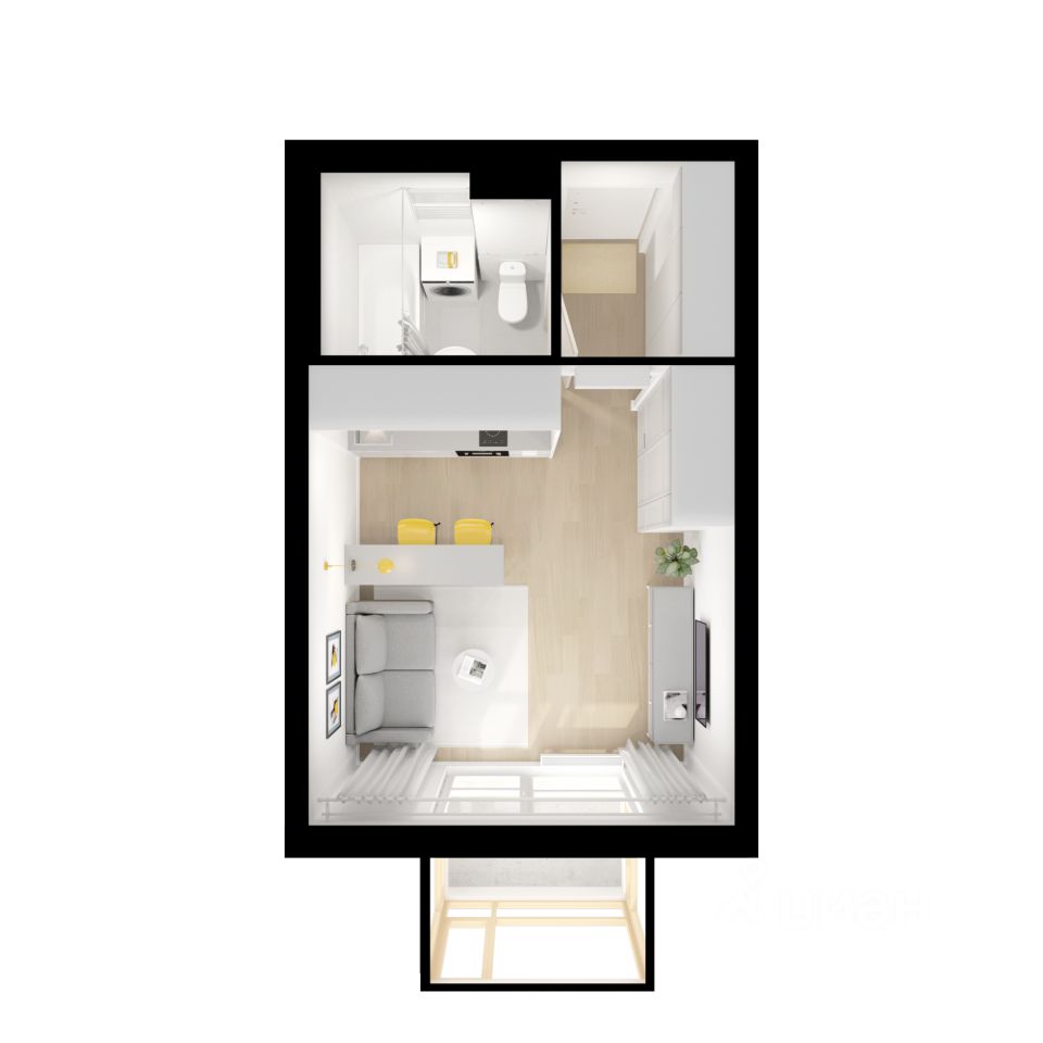 Продаётся квартира-студия площадью 24,4 кв.м на 11 этаже 25 этажного дома (Корпус 2.4, Секция 1) проекта ПИК Ярославский квартал. Светлый просторный подъезд на уровне земли, функциональная планировка, большие окна, c отделкой.