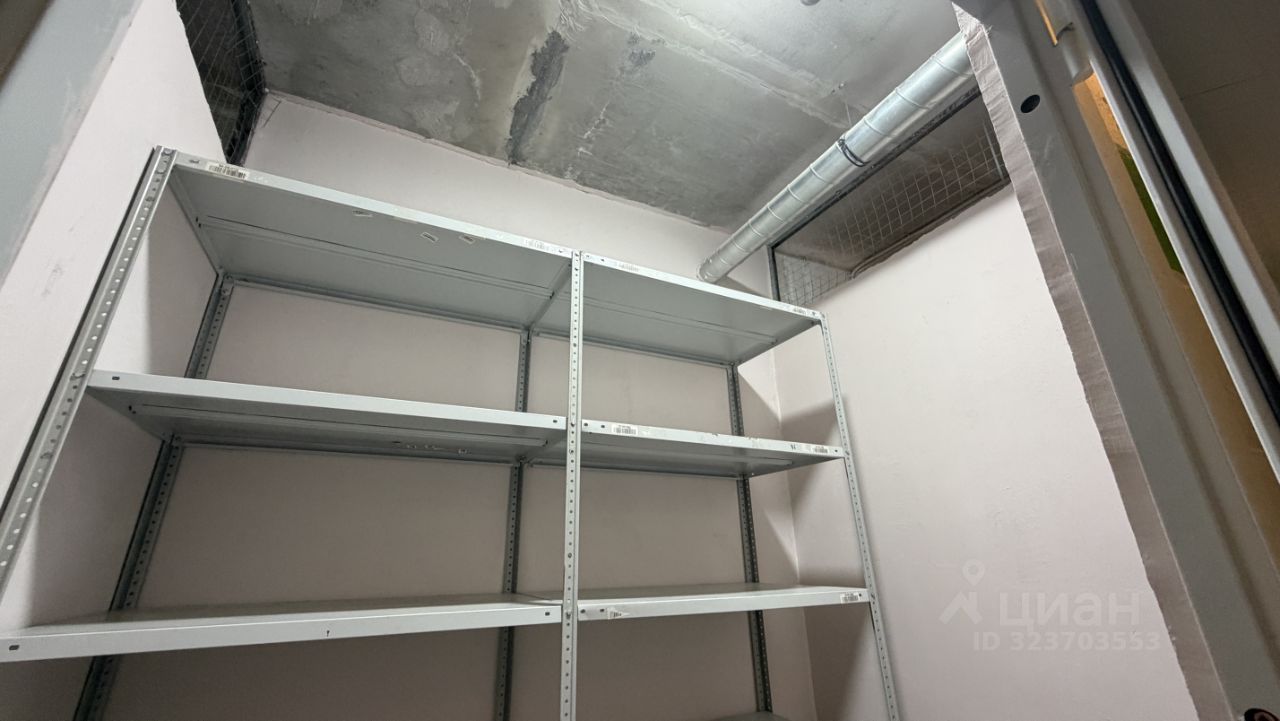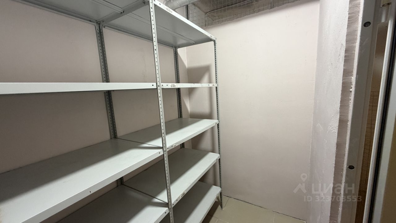 Кладовая оштукатурена, окрашена, оборудована стеллажами, есть электричество и вентиляция (кладовая сухая и отапливаемая).