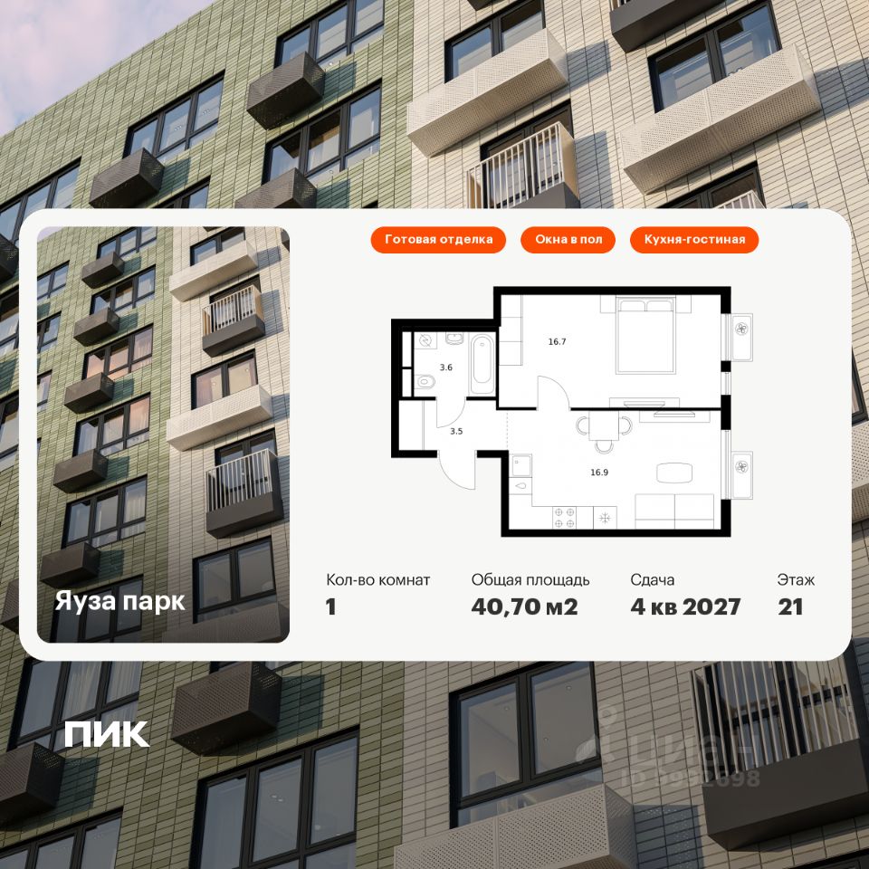 Продаётся 1-комн. квартира площадью 40,7 кв.м на 21 этаже 25 этажного дома (Корпус 11, Секция 1) проекта ПИК Яуза парк. Светлый просторный подъезд на уровне земли, функциональная планировка, большие окна, c отделкой.