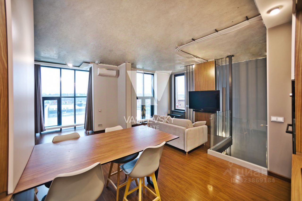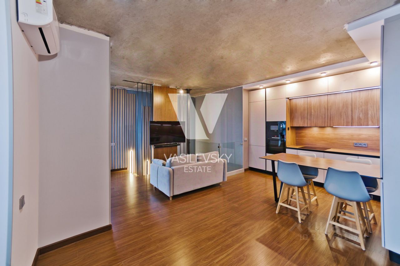 Квартира: - двухуровневая стильная квартира с хорошим ремонтом и удобным зонированием - на 6/6 этаже - панорамные окна много света - меблирована и оснащена необходимой техникой - кондиционер - много места для хранения вещей - дизайнерское освещение 1-й этаж 53 кв м 2-й этаж просторная кухня-гостиная для самых вкусных трапез в кругу близких, а также предусмотрен выход на террасу 13 кв м, где приятно уединиться или провести время с семьей - санузел совмещен, качественная сантехника