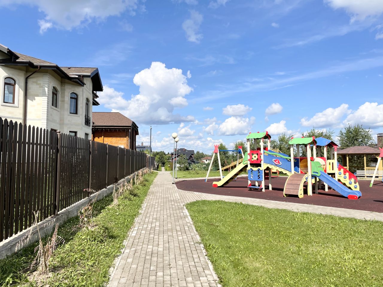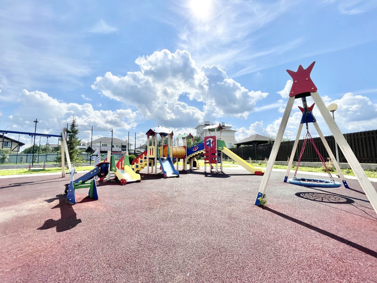 Электроэнергия 30 кВт на большом участке (по 15 кВт на каждом маленьком участке). ГАЗ в посёлке Безопасность — охрана и КПП на въезде. Асфальтированная дорога до поселка. Дорога из брусчатки в поселке. Оборудованы ливневки,чтобы при дожде - не подтапливало дороги. Детские площадки. Спортивная площадка. Теннисный корт. Собственный каток/хоккейная площадка. Пляж.