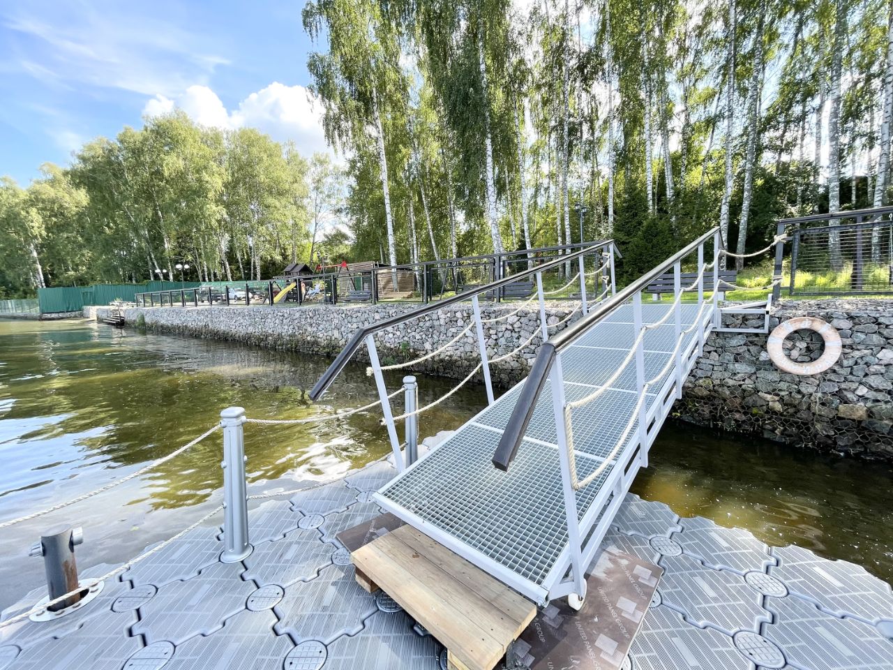 Прямо в посёлке есть собственная набережная на Икшинском водохранилище (ширина водохранилища 600 м), где созданы: прогулочный бульвар, лобное место, пляж, зоны отдыха, скамейки, детская площадка, стеллажи для хранения Sup Board. На набережной есть понтон-причал (возможность поставить лодку), свой спуск для маломерных судов. Вас будут окружать панорамные виды исключительной красоты, единый архитектурный стиль, самый высокий уровень комфорта.