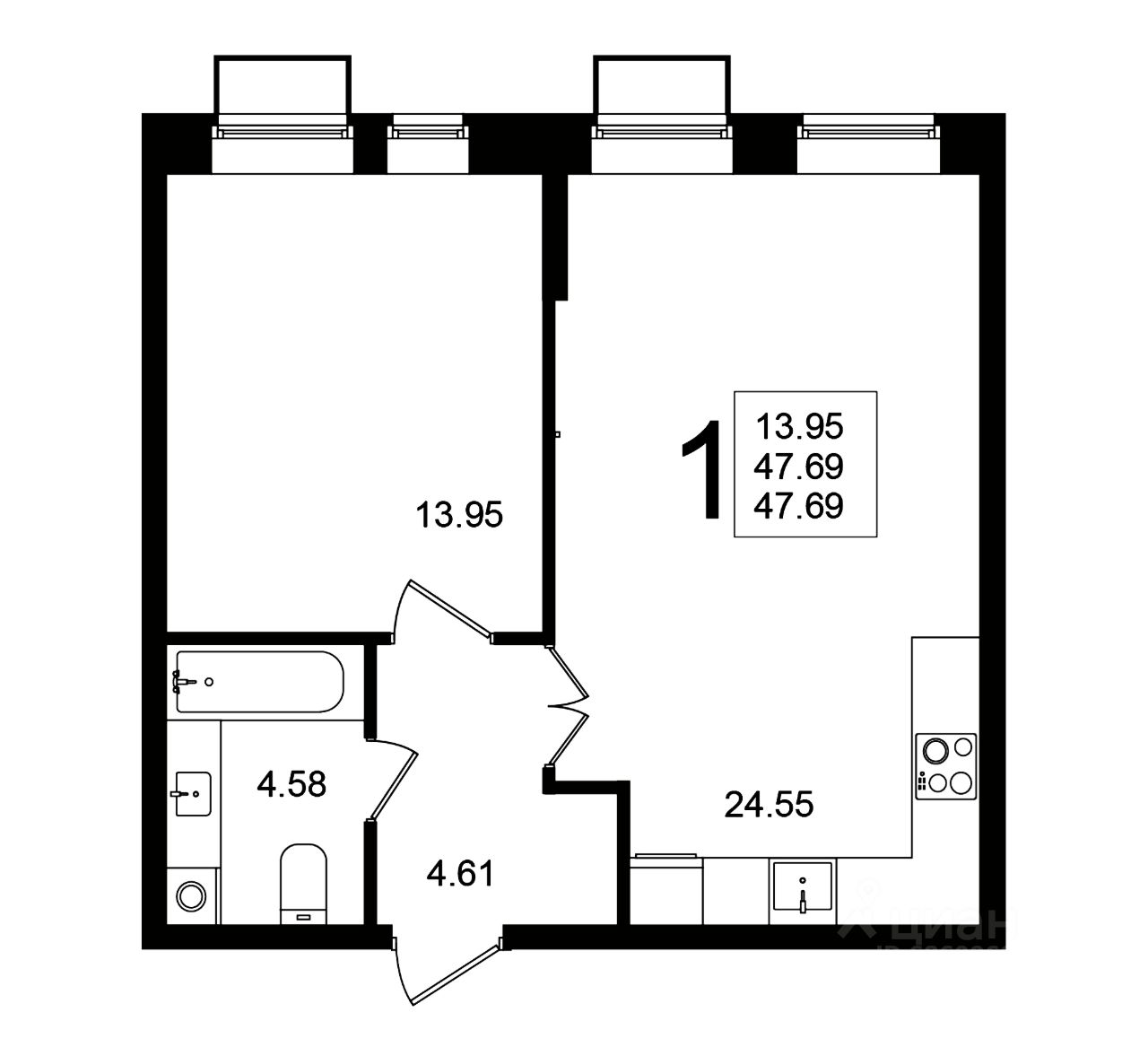 Продаётся 1-комнатная квартира в строящемся доме (Корпус 6), срок сдачи: 4-кв. 2025, общей площадью 47.69 кв.м., на 2 этаже.