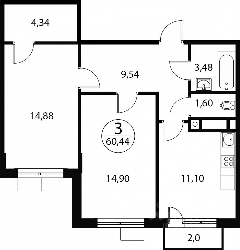 Продаётся 2-комнатная квартира в строящемся доме (Корпус 1), срок сдачи: IV-кв. 2026, общей площадью 60.44 кв.м., на 3 этаже. Расположение, транспортная доступность В состав жилого комплекса ''Катуар'' входят 43 пятиэтажных дома и разнообразная инфраструктура. Это целый посёлок, разместившийся на территории более 30 гектар. Своё название комплекс получил в честь промышленника Льва Катуара, владевшего здесь в XIX веке керамическим заводом, благодаря которому и появился посёлок Некрасовский. До МКАД отсюда 22 километра. Совсем рядом, в пятистах метрах, располагается Дмитровское шоссе. До ближайшей станции московского метро ''Алтуфьево'' можно доехать за 35-40 минут. В трёхстах метрах от комплекса расположена железнодорожная станция ''Катуар'', от которой отходит множество электропоездов до Савёловского вокзала Москвы (самый быстрый из них преодолевает это расстояние за 41 минуту, а до ближайших станций метро можно доехать ещё быстрее). Это самый удобный способ добраться от ЖК до столицы. Примерно в 30-35 минутах езды от комплекса располагаются подмосковные города Дмитров и Мытищи. Инфраструктура В жилом комплексе ''Катуар'' имеется собственная внутренняя инфраструктура, которая включает в себя: детский сад, многофункциональный торговый и общественно-деловой центр, магазины, спортивные площадки, зону барбекю, многоуровневый паркинг и другие объекты. Жителям комплекса не придётся каждый день ездить за покупками в соседние поселки. Поблизости от комплекса (в посёлке Некрасовский и в деревне Сухарево), работают: детские сады, школы, больницы, поликлиники, Дворцы культуры, множество магазинов, мясокомбинат ''Дмитровские колбасы'', конные клубы, санаторий, дворянская усадьба ''Марфино'', построенная в готическом стиле, горнолыжные курорты, СПА-отели. Для того чтобы отдохнуть на природе, жителям Катуара не придется уезжать далеко от дома. Поблизости находятся такие природные зоны, как: обширный Марфинский лесопарк, река Уча, река Саморядовка, несколько прудов, Клязьминское и Икшинское водохранилища. Надёжность застройщика Строительством жилого комплекса ''Катуар'' занималась компания ООО ''Специализированный застройщик ''Катуар Девелопмент''. Организация входит в состав образованной в 2002 году группы компаний ''Ферро-Строй'', которая специализируется на строительстве в Москве жилой, коммерческой и социальной недвижимости. На счету группы компаний ''Ферро-Строй'' строительство в Москве жилого квартала ''Ривер парк'', жилых комплексов ''Примавера'', ''Парковая'', ''Дипломат'', бизнес-центров класса А Pallau RB, Pallau NK, Pallau OST, Pallau MD, торгового центра ''Ключевой'', лечебно-профилактического центра на улице Селезневская, ДОУ на улице Корабельная, школы на улице Речников и другие объекты. Архитектура В жилом комплексе ''Катуар'' представлены квартиры улучшенной планировки с количеством комнат от одной до трех и площадью от 29 кв. метров до 119 кв. метров. Потолки будут иметь высоту 280 см. Общая площадь квартир составит 165 тыс. кв. метров. Квартиры сдаются как с отделкой