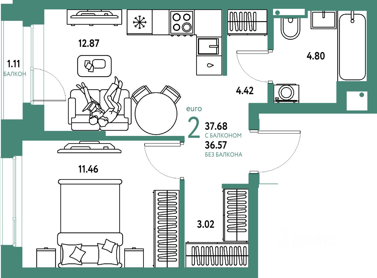 Продаётся 2-комнатная квартира в строящемся доме (Дом Перов), срок сдачи: III-кв. 2026, общей площадью 37.68 кв.м., на 15 этаже. Многоэтажные жилые дома с объектами инфраструктуры, расположенные по адресу: Московская область, г.о. Мытищи, г.Мытищи, мкр. 18Б, ул. Комарова.