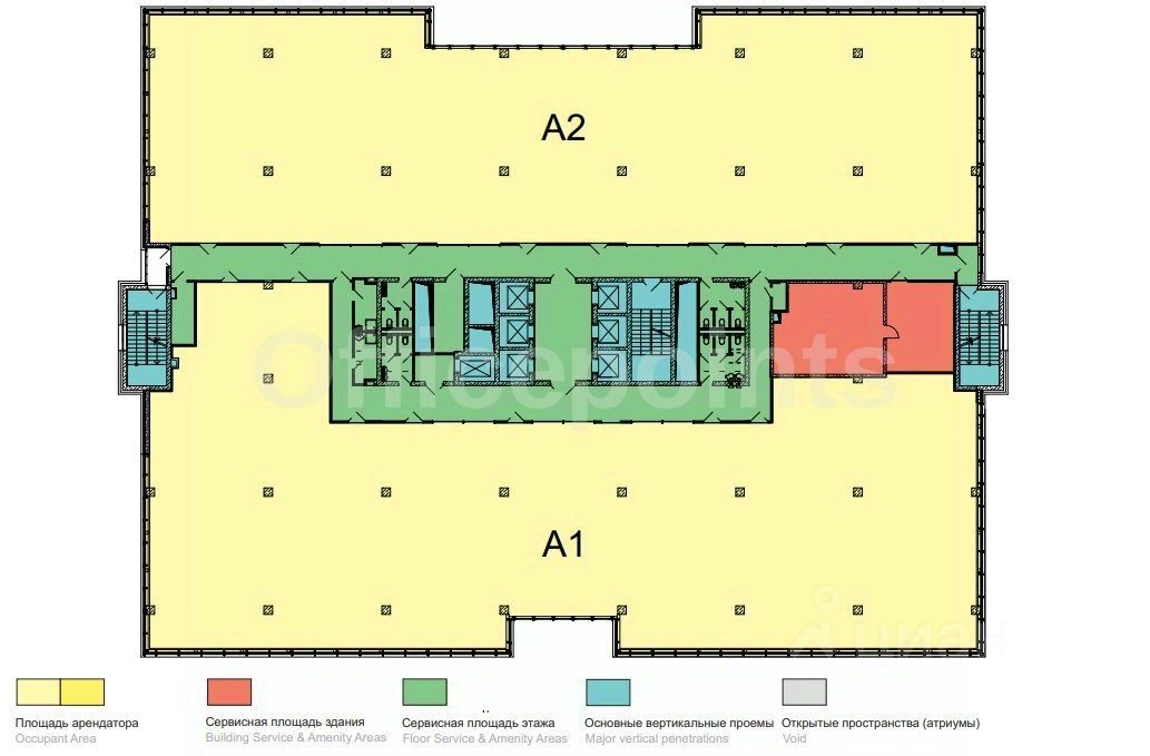 В помещении нет отделки, открытая планировка. Центральная система кондиционирования и приточно-вытяжная система вентиляции. В наличии подземная и наземная парковки (7 000 и 4 000 руб. за м/место в месяц соответственно).