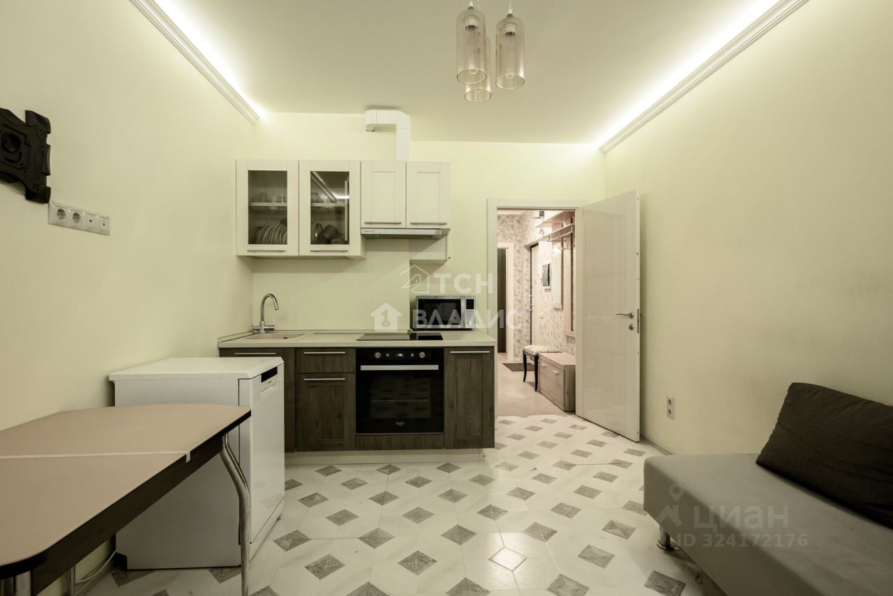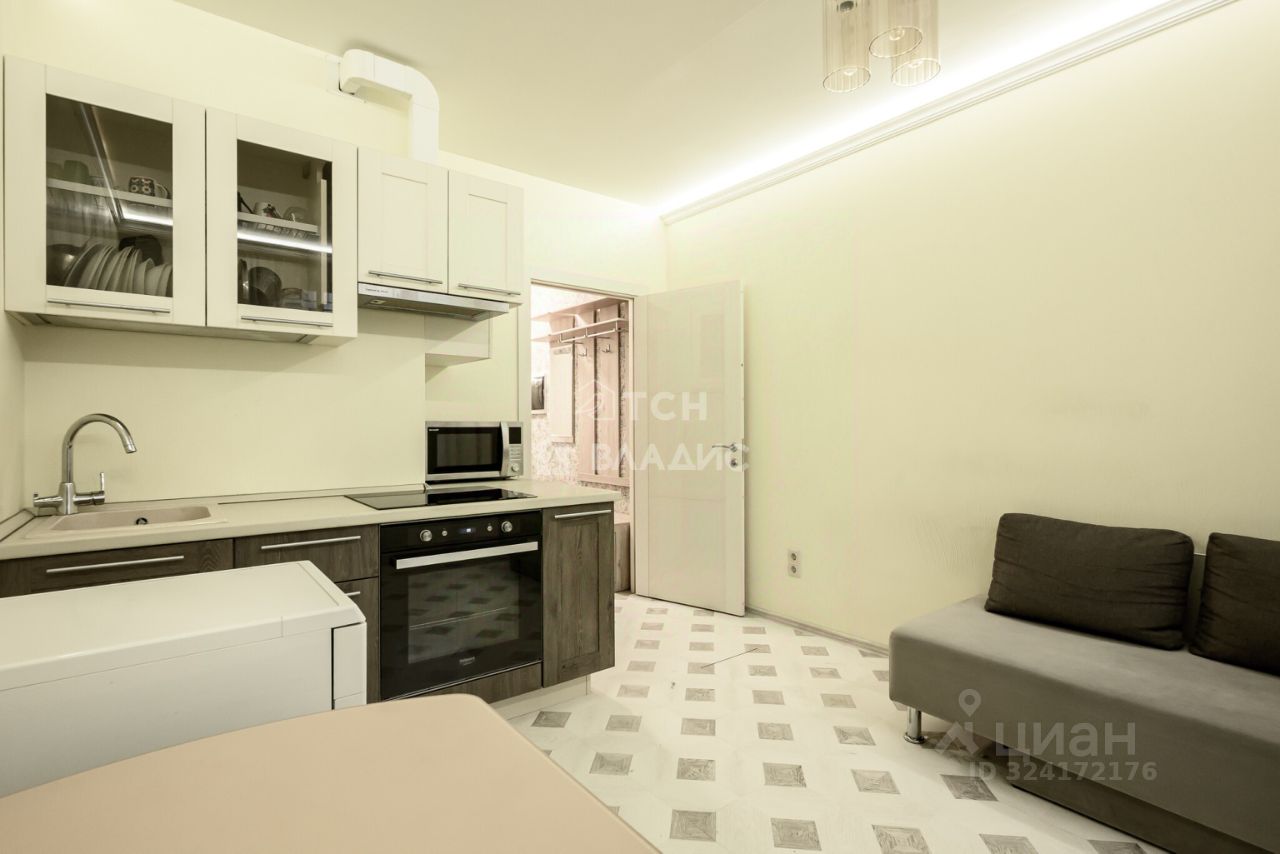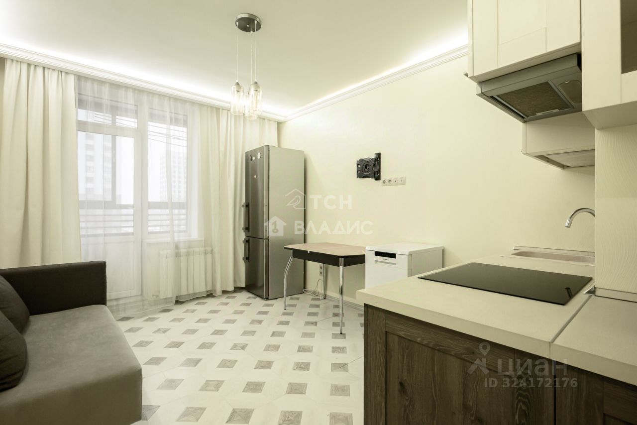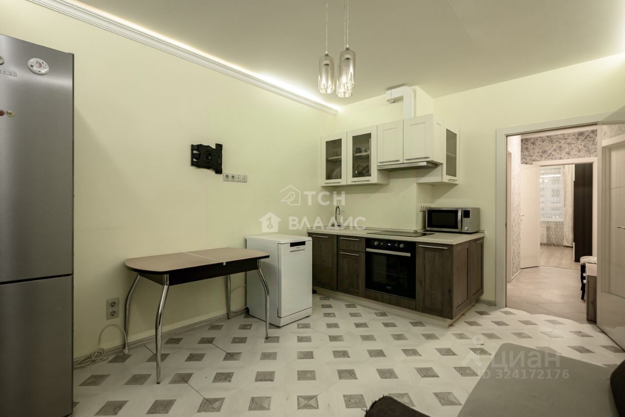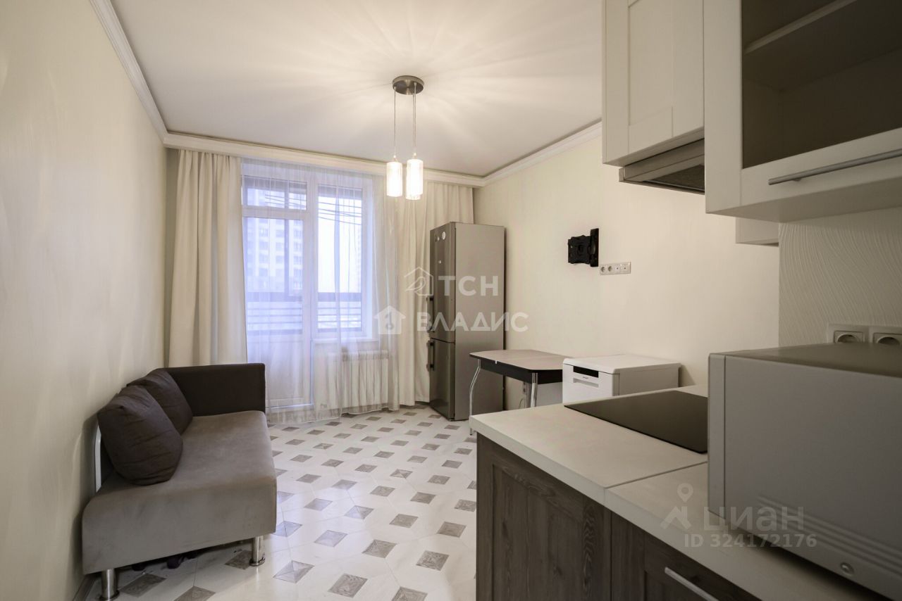 Общая площадь квартиры 36,7 метров (без учета лоджии площадью 3 метра), изолированная комната 13,7 метров с видом во двор укомплектована мебелью, большая светлая кухня 14,5 метров с выходом на застекленную лоджию и видом на современную благоустроенную прогулочную аллею. Площадь кухни позволяет организовать комфортную гостиную зону. В квартире совмещенный санузел в плитке, установлен водонагреватель. В коридоре предусмотрено место для хранения.