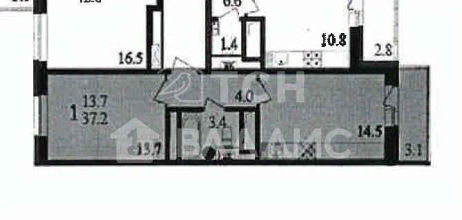 Общая площадь квартиры 36,7 метров (без учета лоджии площадью 3 метра), изолированная комната 13,7 метров с видом во двор укомплектована мебелью, большая светлая кухня 14,5 метров с выходом на застекленную лоджию и видом на современную благоустроенную прогулочную аллею. Площадь кухни позволяет организовать комфортную гостиную зону. В квартире совмещенный санузел в плитке, установлен водонагреватель.