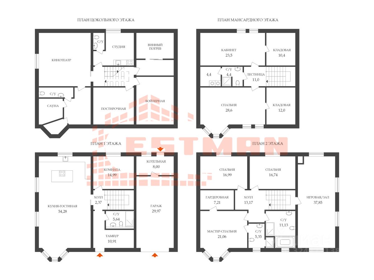 Планировка дома: Цокольный этаж: кинозал, банный комплекс (тропический душ, парная с предбанником и санузлом), комната для обслуживающего персонала (студия с кухней, зоной отдыха и санузлом), винный погреб, постирочная, бойлерная, 1й этаж: просторная кухня-гостиная, оборудована всей необходимой мебелью и техникой для комфортного проживания ( встроенный кухонный гарнитур, варочная панель, посудомоечная машина, холодильник, кондиционер, установлен фильтр очистки воды, видеонаблюдение, бризер), меблированный рабочий кабинет (возможно использовать как спальную комнату), совмещенный санузел, гараж с отдельным входом, 2й этаж: спортзал зал со вторым светом, кондиционер, 3й этаж: 3и спальные комнаты, включая мастер-спальню оборудованную своим санузлом и гардеробной комнатой, совмещенный санузел, Мансардный этаж: две спальни оснащенные кондиционерами, а также гардеробными комнатами, отдельный совмещенный санузел. Вся встроенная мебель и техника - уже ВКЛЮЧЕНЫ в стоимость! Перед домом 4е парковочных места под навесом. Подключён высокоскоростной интернет (оптоволокно + Wi-Fi).