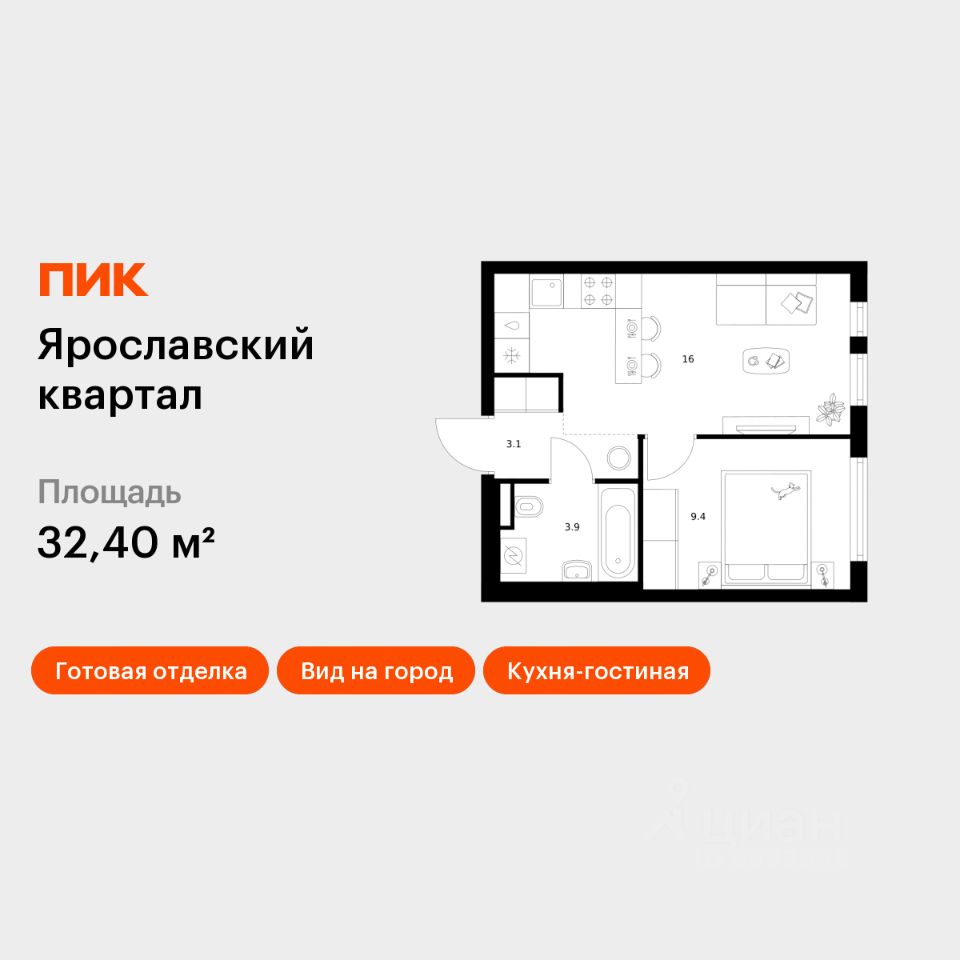Продаётся 1-комн. квартира площадью 32,4 кв.м на 25 этаже 25 этажного дома (Корпус 2.4, Секция 1) проекта ПИК Ярославский квартал. Светлый просторный подъезд на уровне земли, функциональная планировка, большие окна, c отделкой.