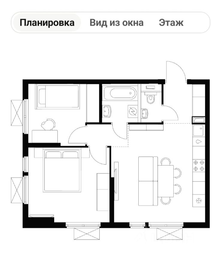 Пространство двушки продумано так, чтобы вы сами могли организовать жизнь в квартире, как вам хочется. В большой столовой будет приятно собираться всей семьёй, а разнесённые спальни позволят сохранять личные границы, когда это необходимо.