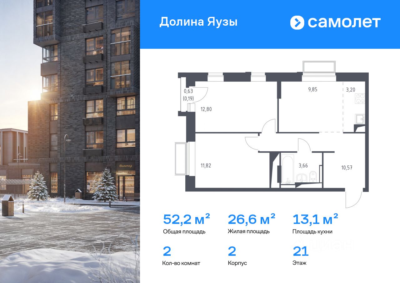 Строим кварталы для жизни с заботой о будущем. Предлагается 2-комнатная квартира комфорт-класса 52,2 кв.м в корпусе 2 на 21 этаже, в ЖК ''Долина Яузы'' Квартира с чистовой отделкой. Доступность дополнительных опций уточняйте у застройщика.