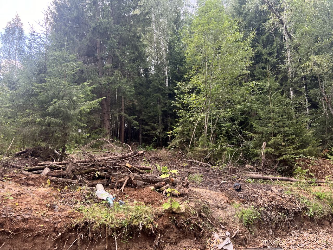 Наш участок в деревьях , соседи уже расчистили и возвели дома(смотреть на фото).