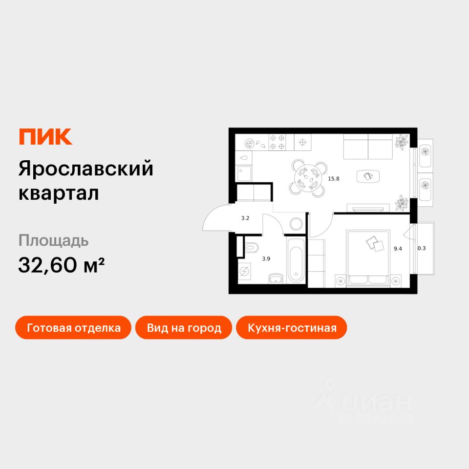 Продаётся 1-комн. квартира площадью 32,6 кв.м на 11 этаже 25 этажного дома (Корпус 2.2, Секция 1) проекта ПИК Ярославский квартал. Светлый просторный подъезд на уровне земли, функциональная планировка, большие окна, c отделкой.