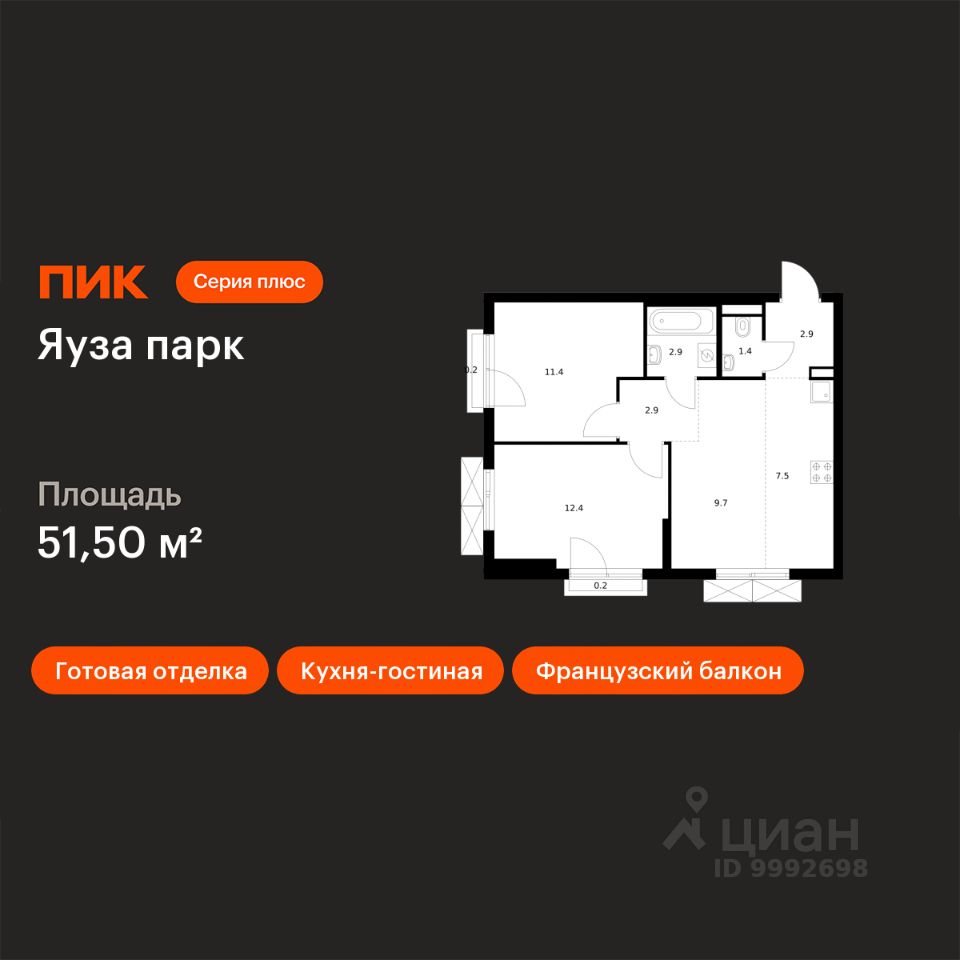 Продаётся 2-комн. квартира площадью 51,5 кв.м на 16 этаже 24 этажного дома (Корпус 7, Секция 1) проекта ПИК Яуза парк. Светлый просторный подъезд на уровне земли, функциональная планировка, большие окна, c отделкой.