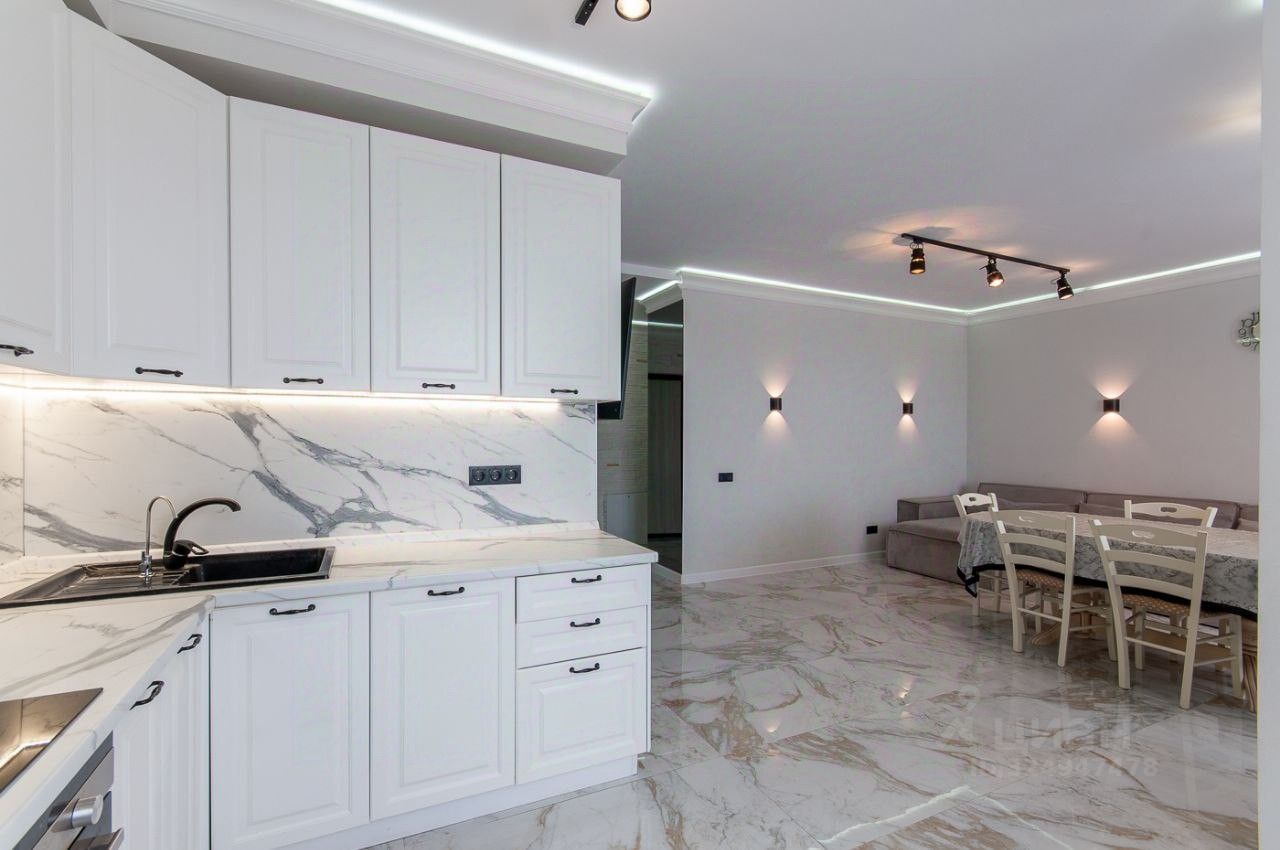 • Функциональная планировка: просторная кухня площадью 30 м², уютная гостиная и две светлые спальни. • Современный премиальный ремонт: качественные материалы, керамогранит под мрамор на полу и стенах. • Светлый санузел с современной сантехникой премиум-класса. • Уютный балкон — приятное место для утреннего кофе или спокойного отдыха.