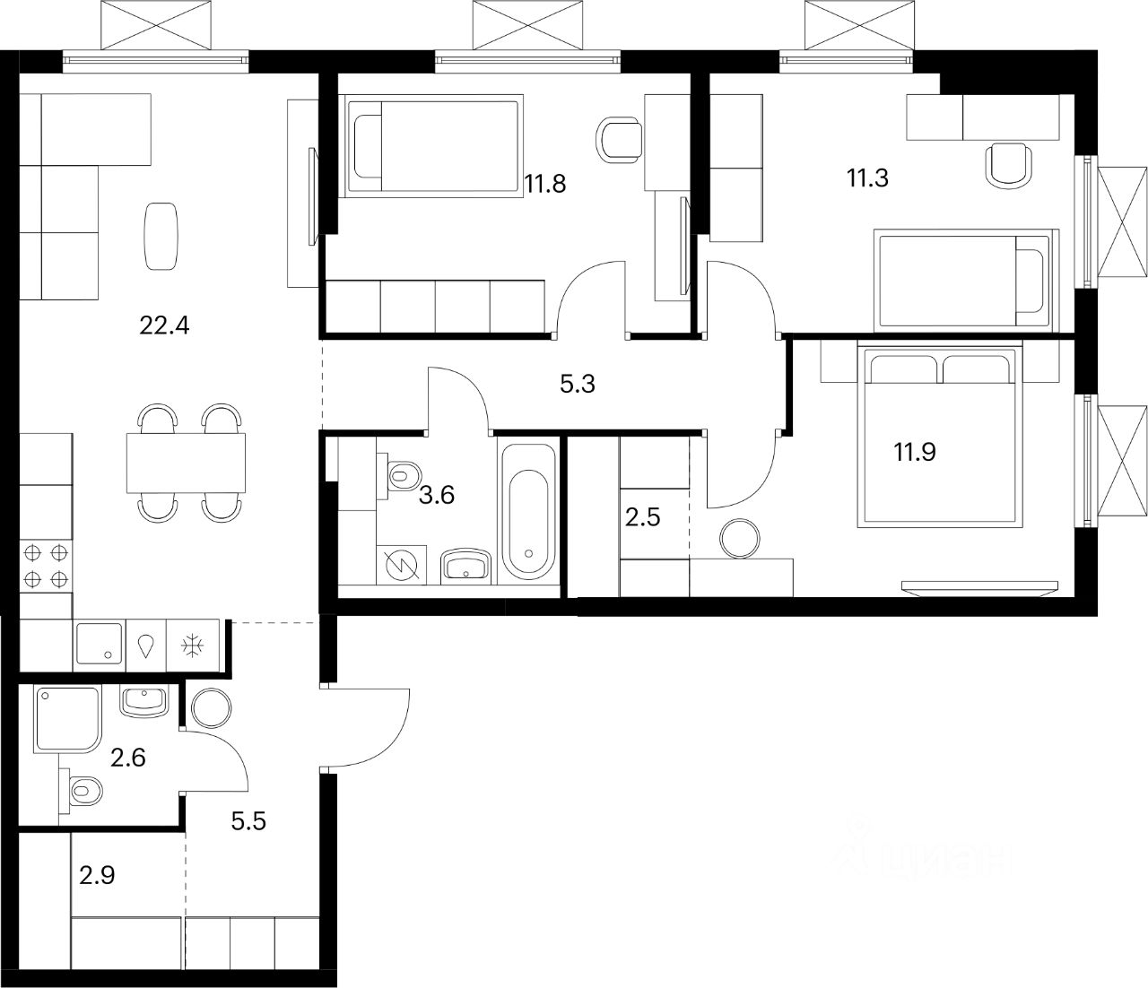 Продаётся 3-комн. квартира площадью 79,8 кв.м на 4 этаже 24 этажного дома (Корпус 6, Секция 1) проекта ПИК Яуза парк. Светлый просторный подъезд на уровне земли, функциональная планировка, большие окна, c отделкой.