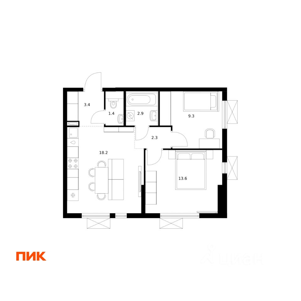 Продаётся 2-комн. квартира площадью 51,1 кв.м на 13 этаже 24 этажного дома (Корпус 6, Секция 1) проекта ПИК Яуза парк. Светлый просторный подъезд на уровне земли, функциональная планировка, большие окна, c отделкой.
