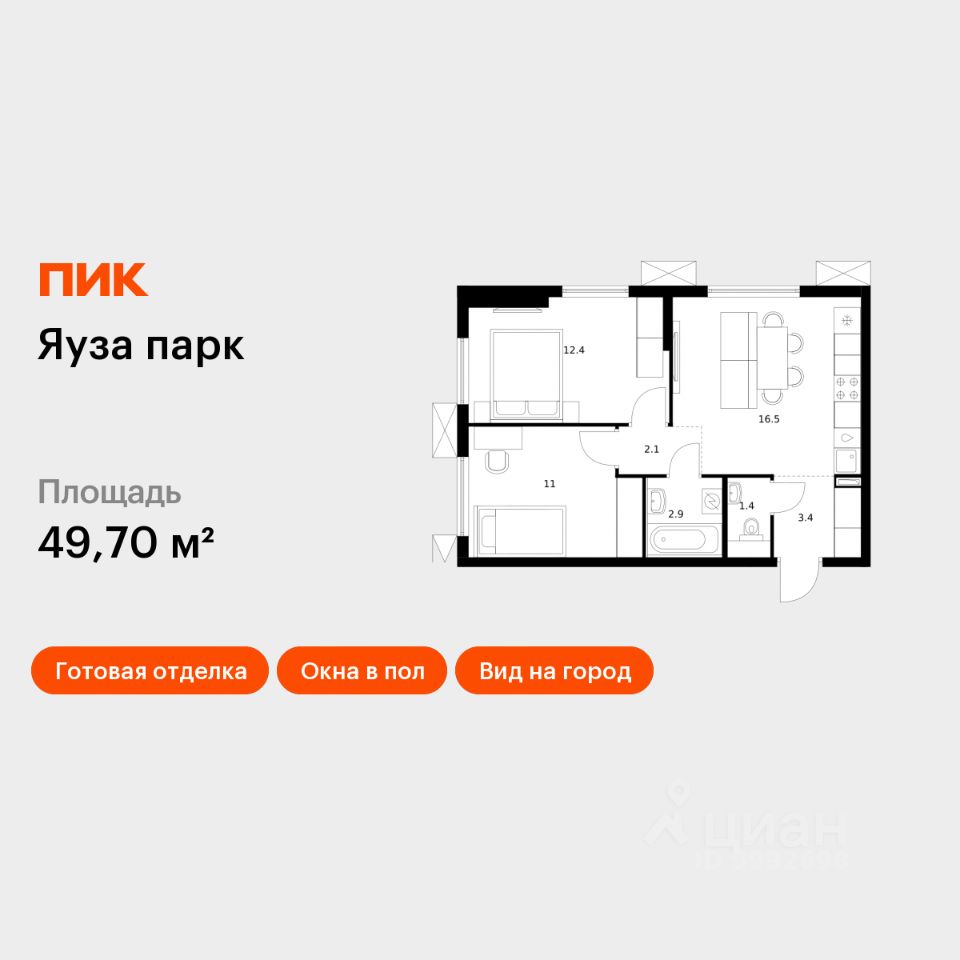 Продаётся 2-комн. квартира площадью 49,7 кв.м на 23 этаже 24 этажного дома (Корпус 6, Секция 1) проекта ПИК Яуза парк. Светлый просторный подъезд на уровне земли, функциональная планировка, большие окна, c отделкой.
