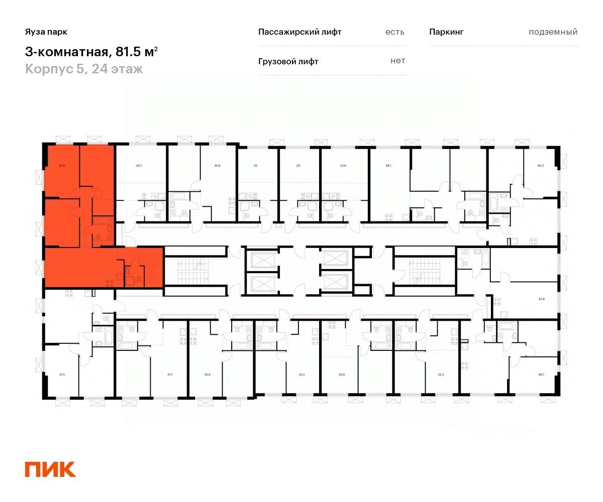 Продаётся 3-комн. квартира площадью 81,5 кв.м на 24 этаже 24 этажного дома (Корпус 5, Секция 1) проекта ПИК Яуза парк. Светлый просторный подъезд на уровне земли, функциональная планировка, большие окна, c отделкой.